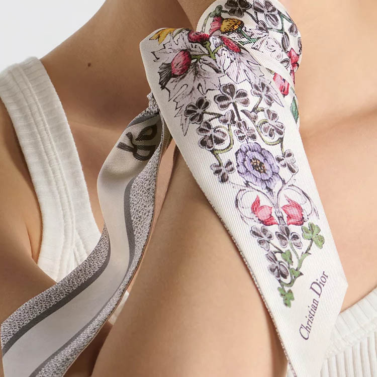 Шелковый шарф Mulberry Silk белый женский DIOR