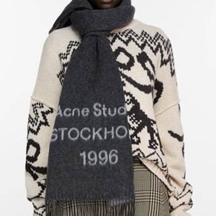 Жаккардовый шарф с бахромой и логотипом Acne Studios