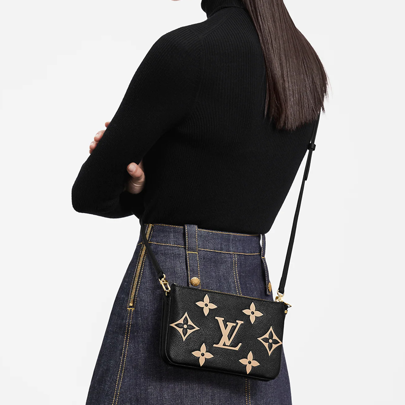 Двухзамковая сумочка-пудреница двухцветная Monogram черный/коричневый LOUIS VUITTON
