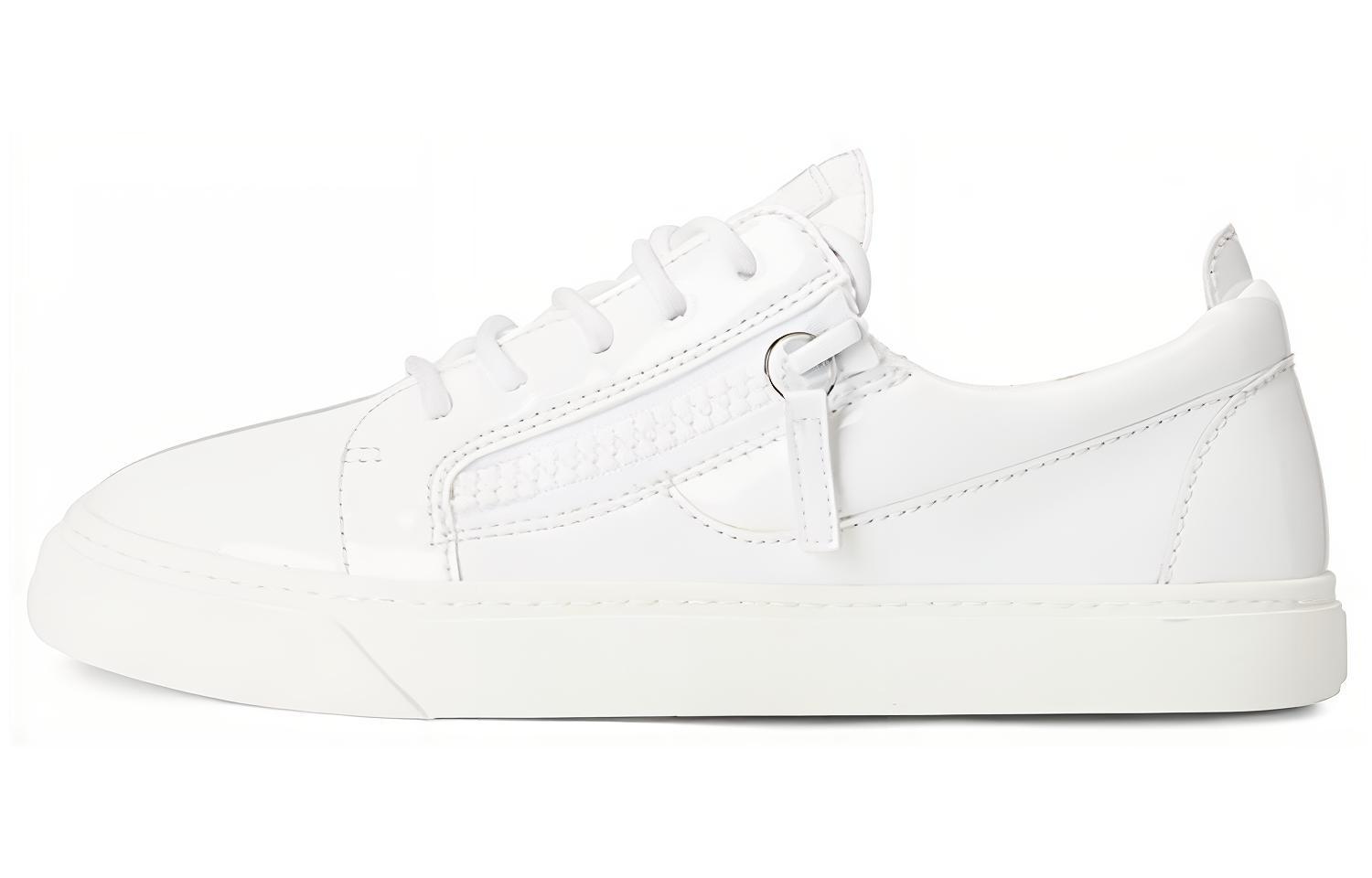 Белая искусственная лакированная кожа, синтетическая ткань (34% полиэстер, 66% полиуретан), рукописный логотип бренда, резиновая подошва с логотипом бренда, сделано в Италии.