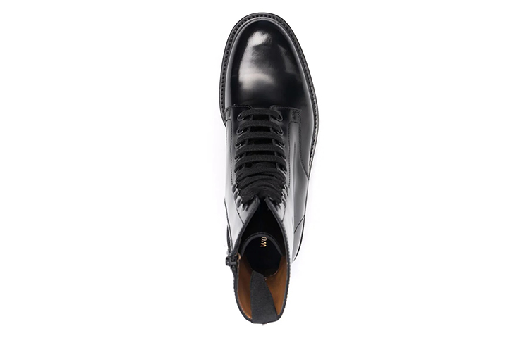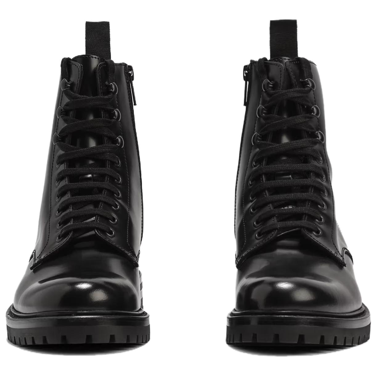 Эти ботильоны на шнуровке, изготовленные в Италии, имеют черный цвет, длину до щиколотки, круглый носок, шнуровку спереди, логотип на стельке и низкий массивный каблук.