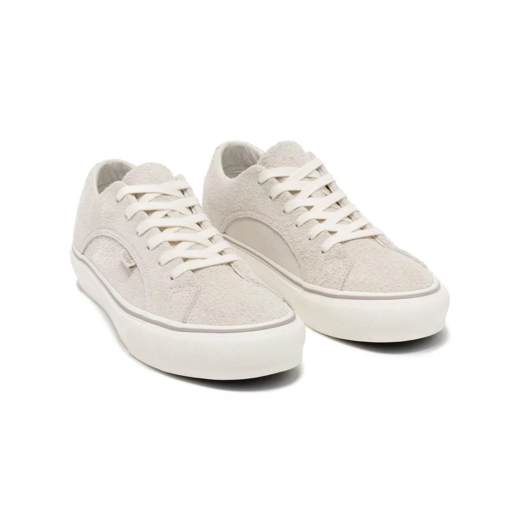 В HAVEN вместо традиционной парусины используется водонепроницаемый верх из длинноворсовой замши. Фирменные полукруглые вставки Lampin и усиливающая полоска на пятке дополнены матовой замшей. Оригинальный белый логотип Vans снаружи заменён на нубуковую этикетку, выгравированную лазером, что придаёт кроссовкам более премиальный вид.
