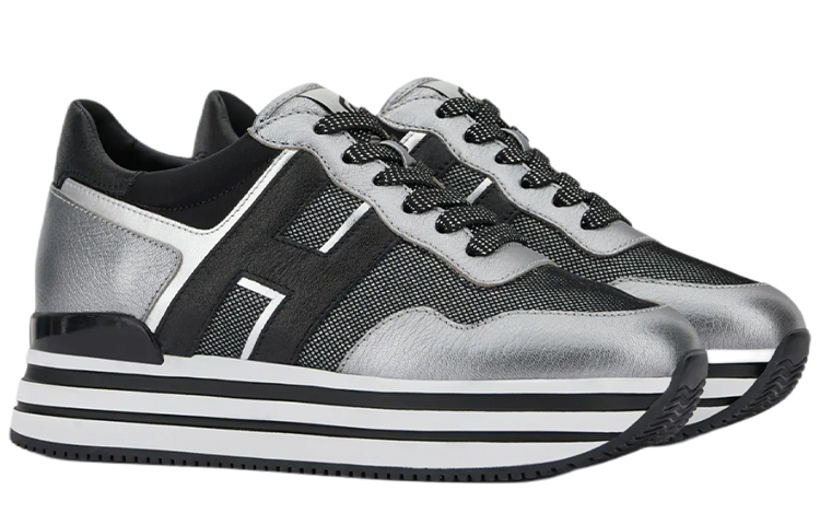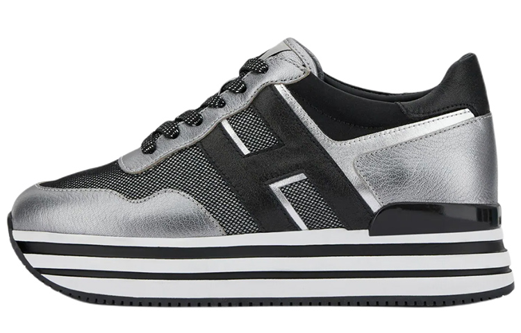 H222 Mid Top Platform Shoes Women's Black Silver HOGAN