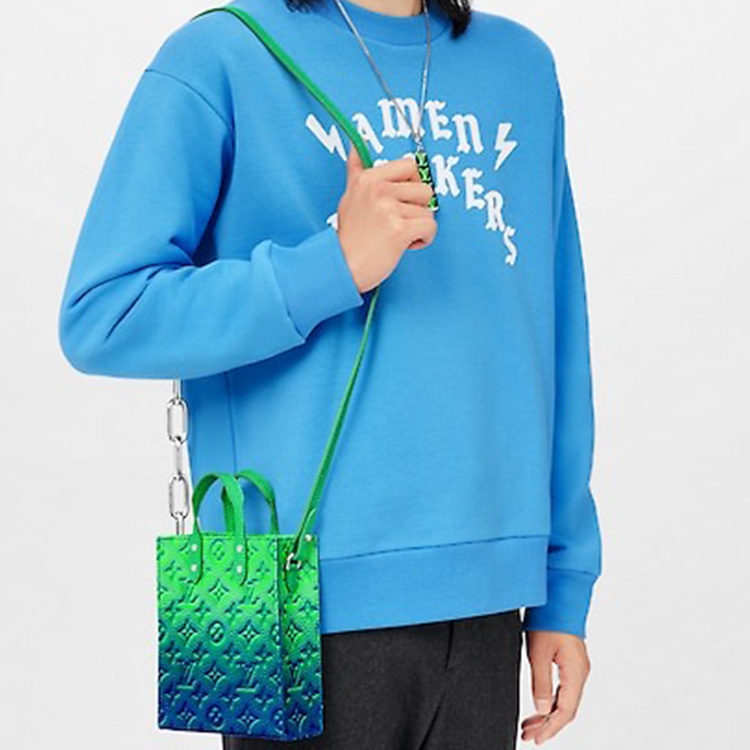 Сумка Sac Plat Xs из кожи Taurillon Illusion сине-зеленого цвета LOUIS VUITTON