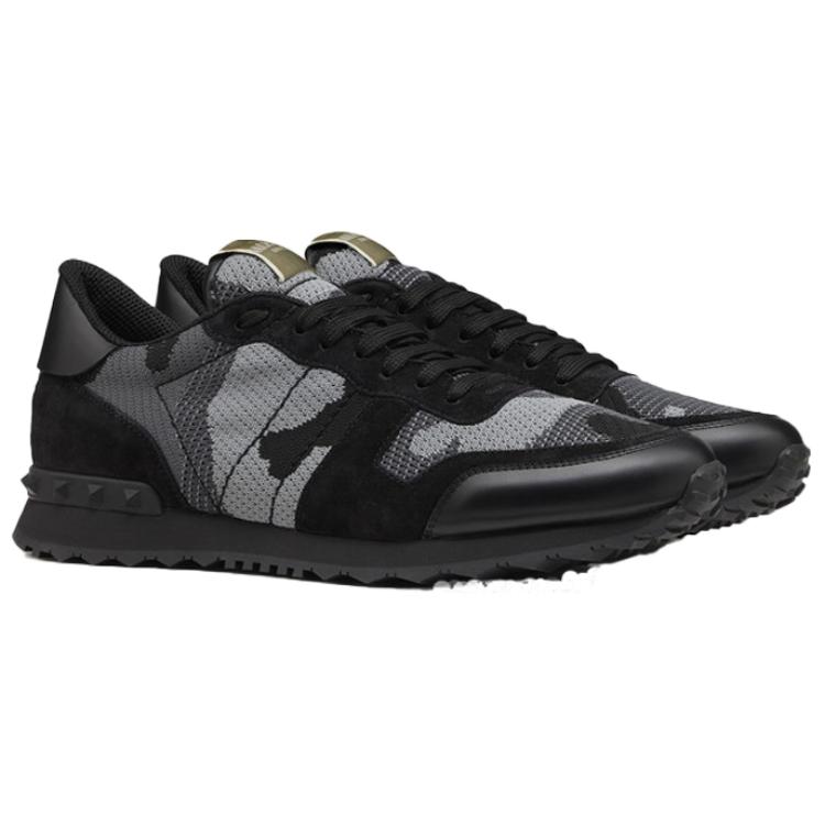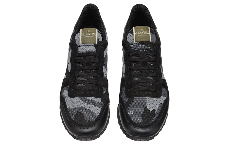 Кроссовки Valentino Garavani Rockrunner с камуфляжным принтом, резиновыми заклёпками и резиновой подошвой. Сделано в Италии.