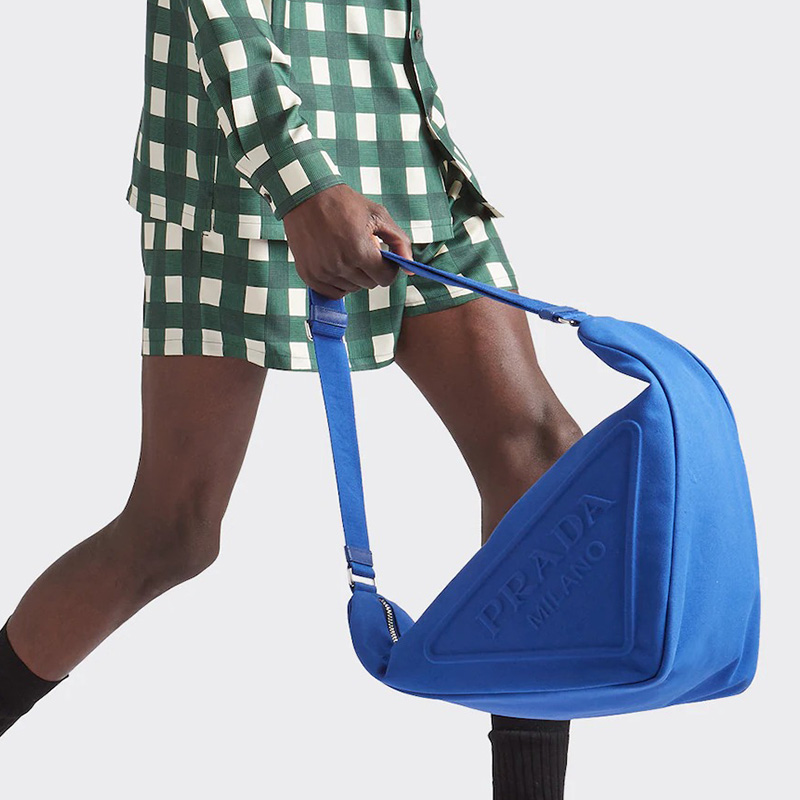 Сумка треугольная из холста кобальтово-синяя PRADA