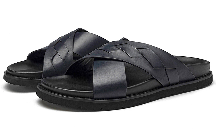 Верх изготовлен из одностороннего ромбовидного плетения из коровьей кожи; стелька спроектирована в соответствии с принципами эргономики, соответствует своду стопы и удобна для ходьбы; подошва изготовлена из износостойкого вспененного резинового материала, удобного и легкого.