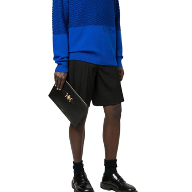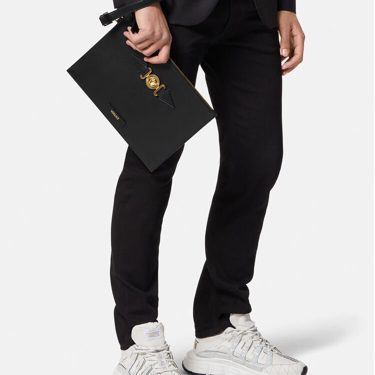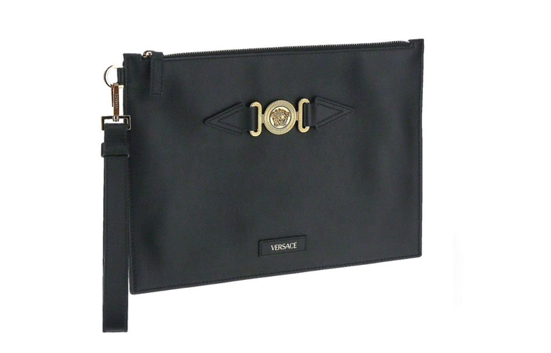 Кожаная сумка-клатч мужская черная VERSACE