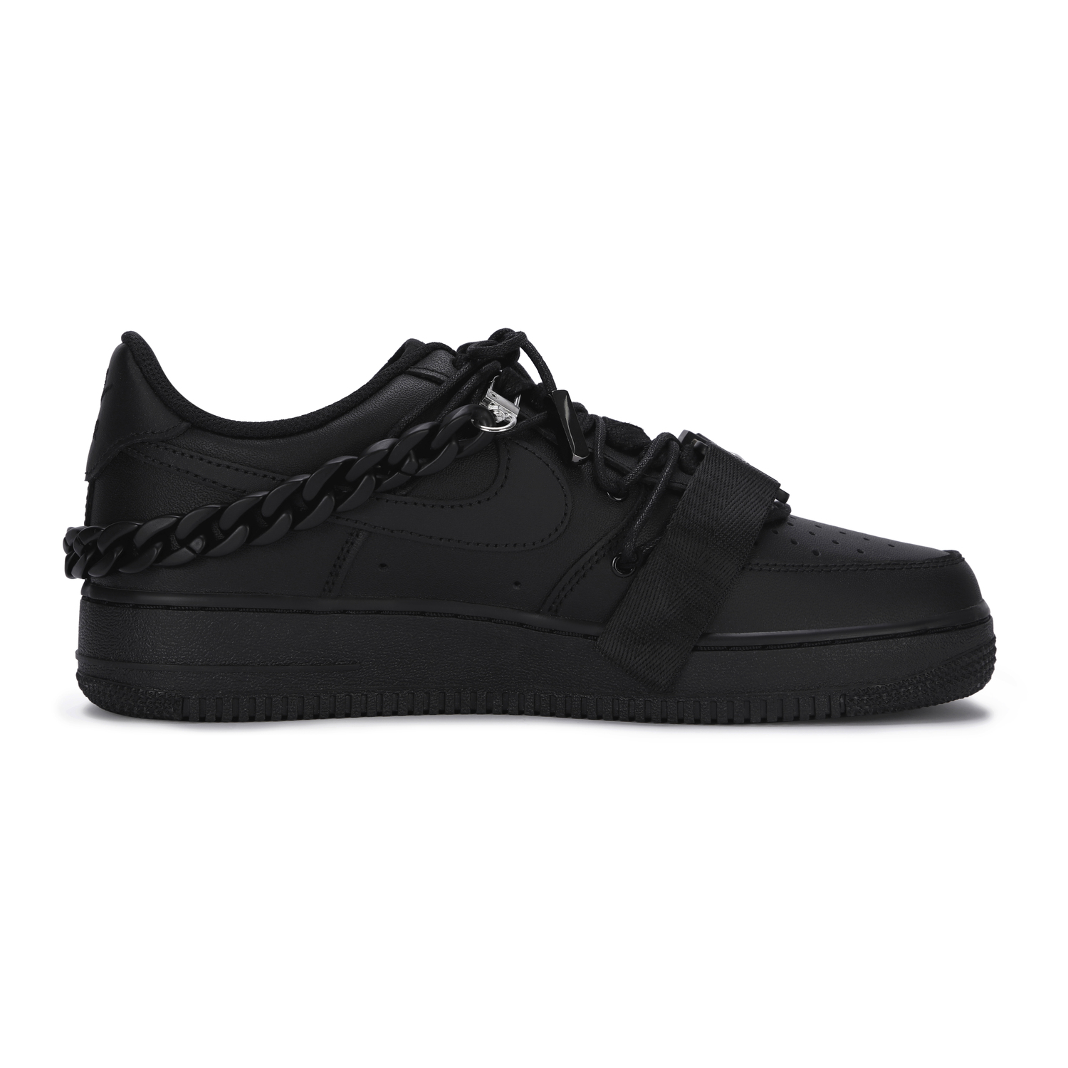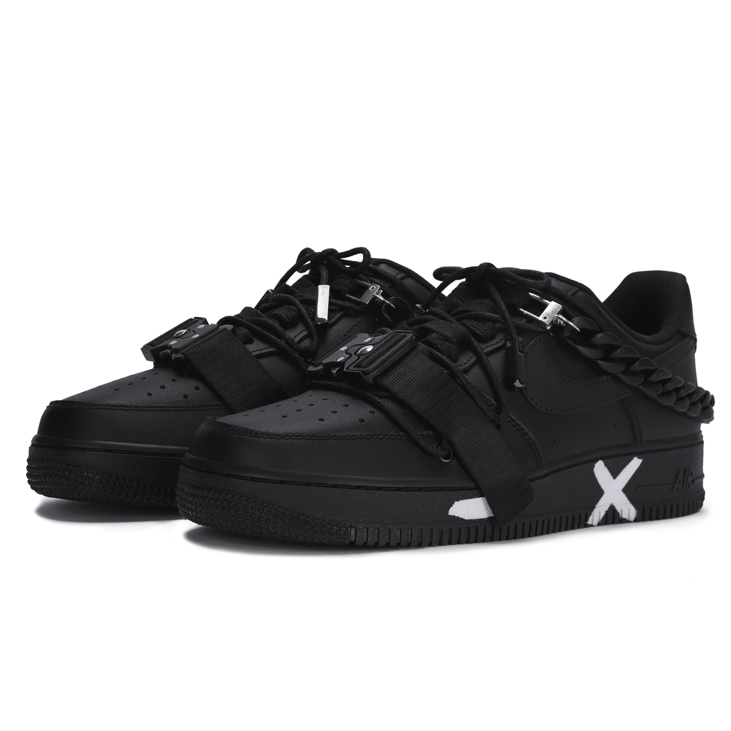Эти кроссовки, изготовленные на заказ, представляют собой оригинальную модель ретро-кроссовок Nike Air Force 1 Low '07. Вдохновленные современным трендом на тёмный, функциональный стиль, они отличаются характерным дизайном пряжки и деконструированной эстетикой, создающей уникальный визуальный эффект.