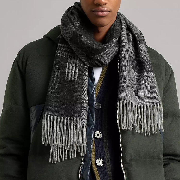 Шерстяной шарф HERMES черно-серый 51 367₽
