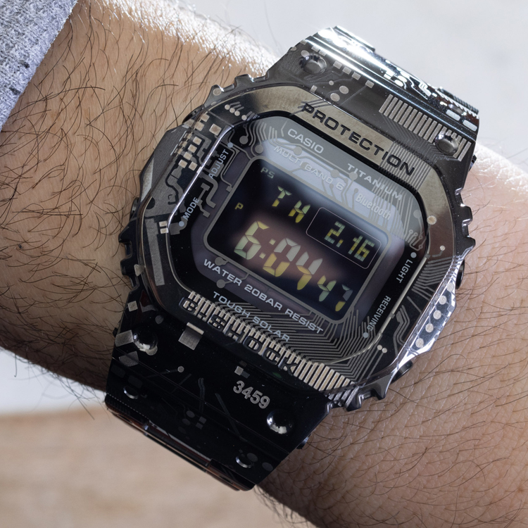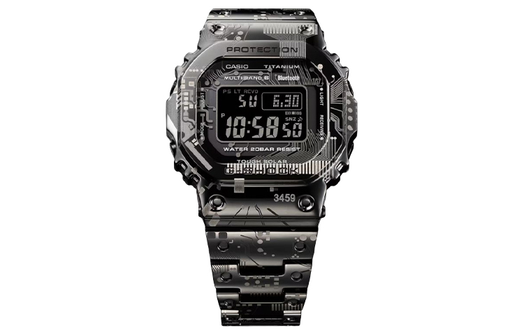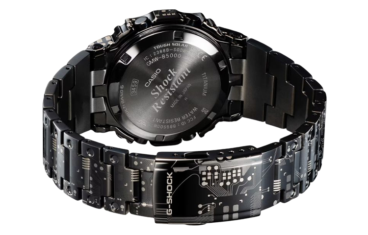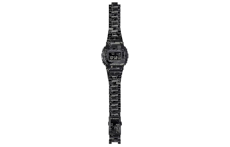 Особое пополнение в линейке GMW-B5000 — оригинальная полнометаллическая версия самого первого G-SHOCK. Эта уникальная модель отличается особым камуфляжным рисунком. Узор создан с помощью черного ионного покрытия и лазерной гравировки, которая наносится как до, так и после процесса ионизации. Этот метод создает эффект теней и градаций, придавая рисунку объем, глубину и трехмерность.