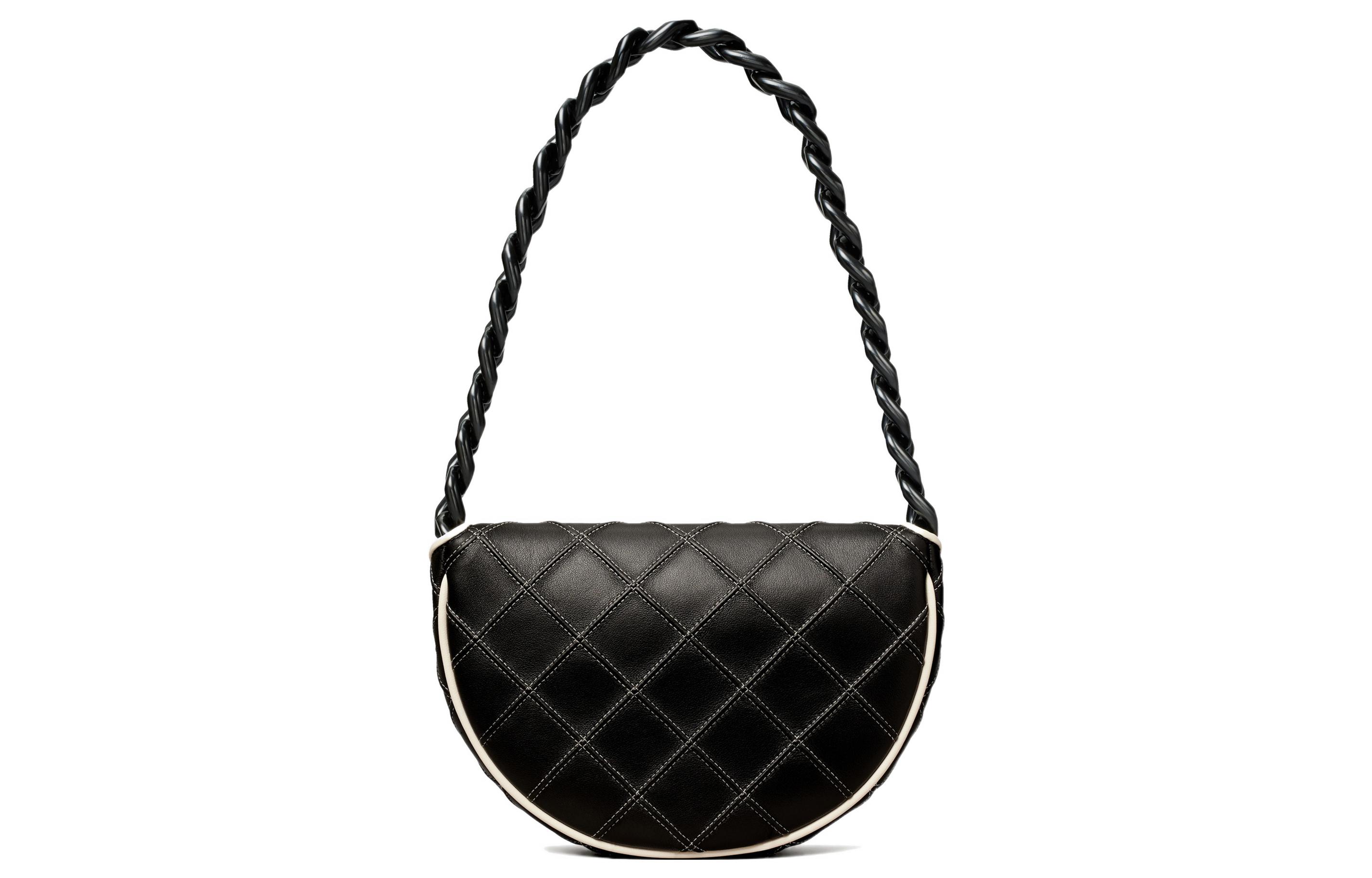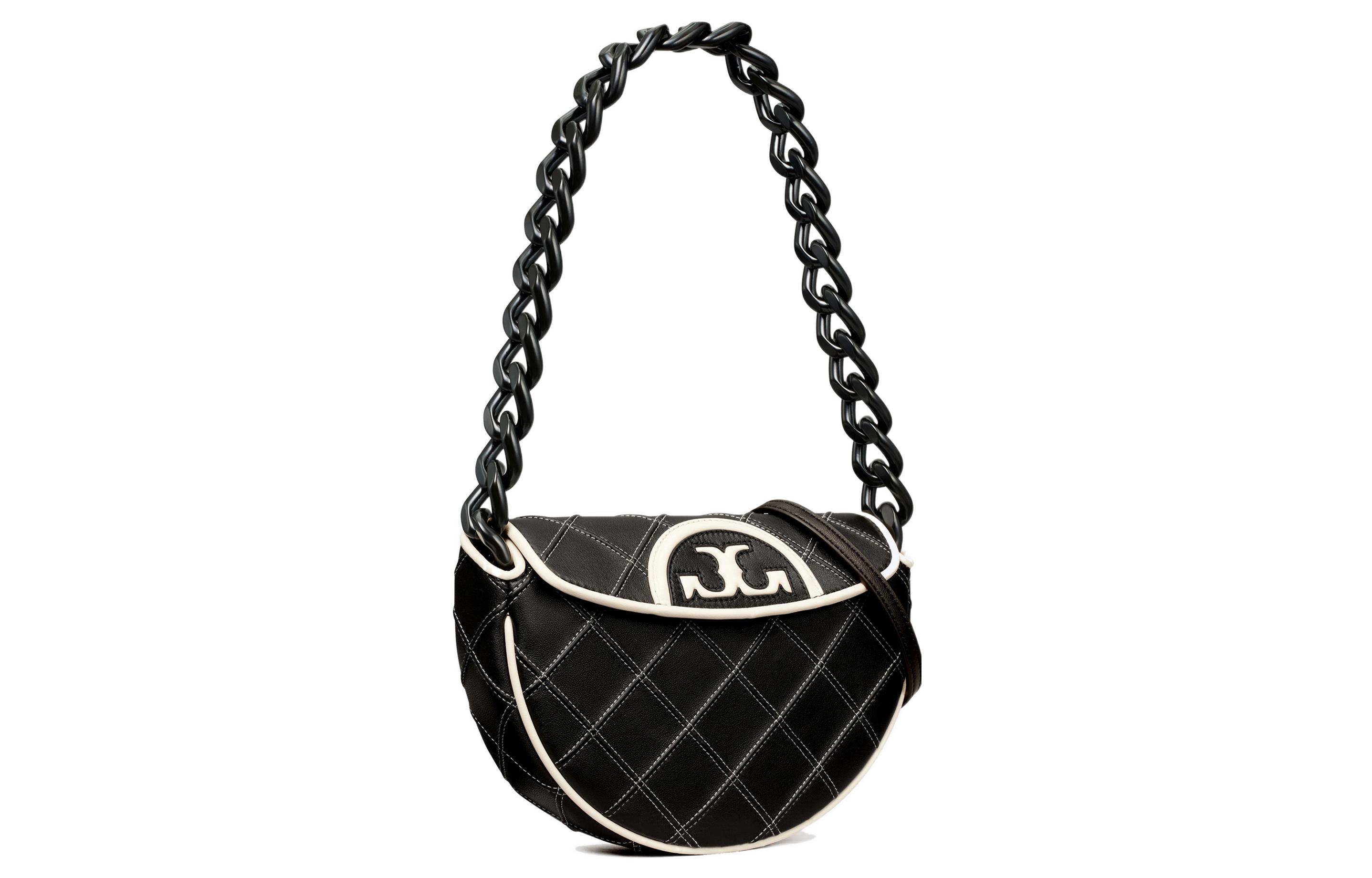 Fleming Leather Клатч-полумесяц, Сумка через плечо, Миниатюрная портативная сумка кроссбоди женская черная TORY BURCH