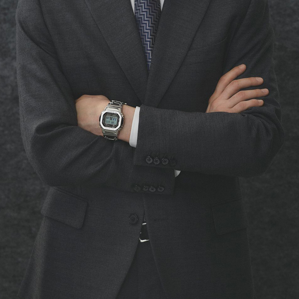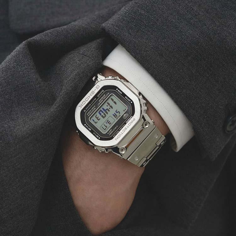 GMW-5000 — оригинальная модель G-Shock 1983 года. Серия GMW-B5000 унаследовала ее характерный квадратный дизайн и получила полностью металлическую отделку вместе с улучшенными функциями, включая связь со смартфоном. Технология высокоплотного монтажа также позволяет часам сохранять свой размер. Задняя часть часов имеет прочную винтовую застежку и обработана DLC для устойчивости к износу.