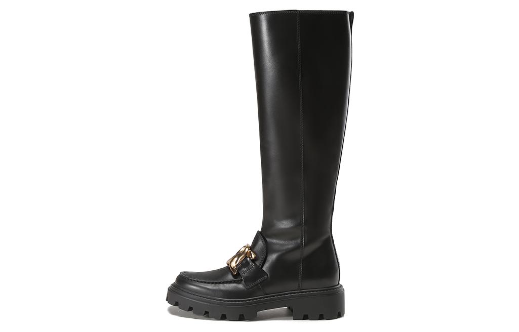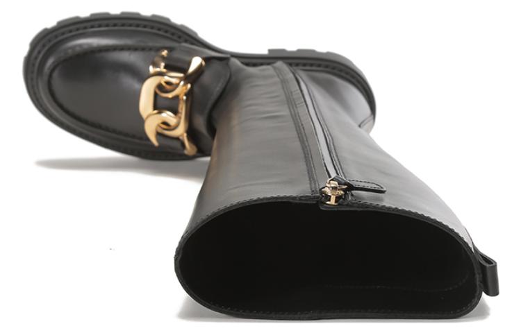 Верх из гладкой кожи украшен витой металлической пряжкой и боковой молнией, что создает модный и актуальный образ. Обтекаемая форма подчеркивает очарование классической женской обуви.