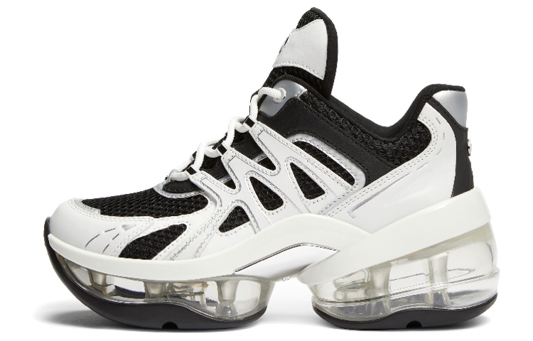 Эти женские кроссовки Olympia на шнуровке выполнены из белого цвета с классическими чёрными акцентами. Благодаря изящной прозрачной изогнутой подошве они воплощают популярный в этом сезоне спортивный стиль.