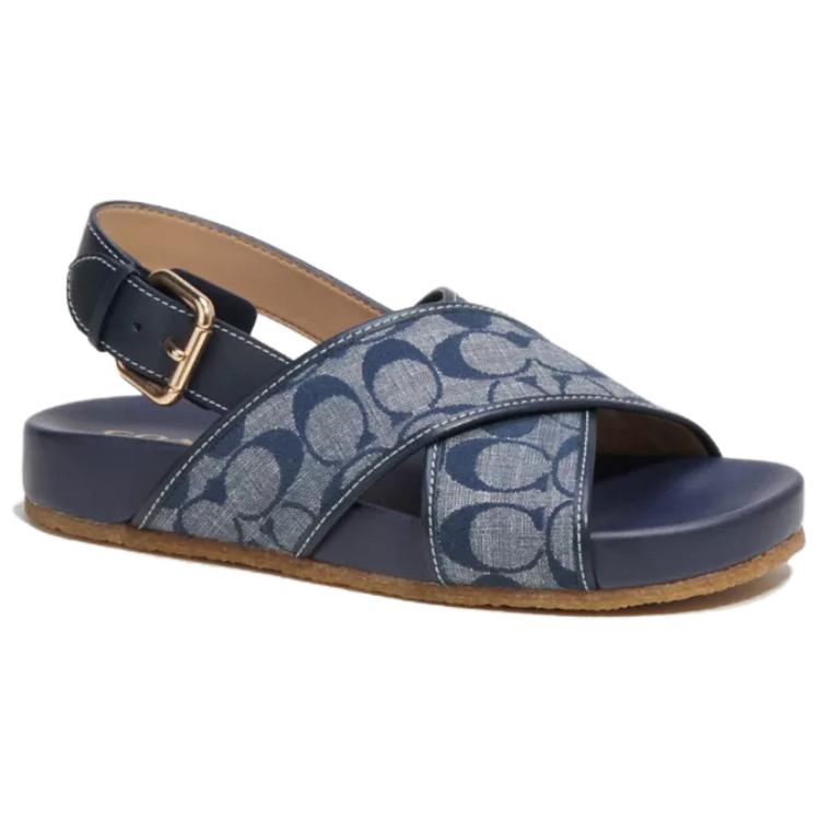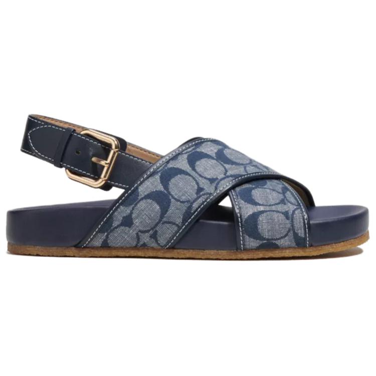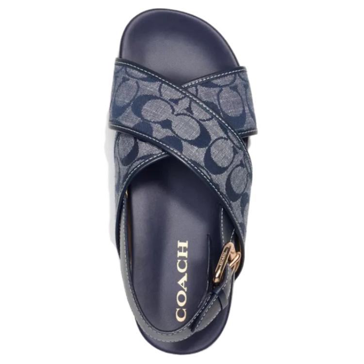 Женские сандалии на одной бляшке синие COACH