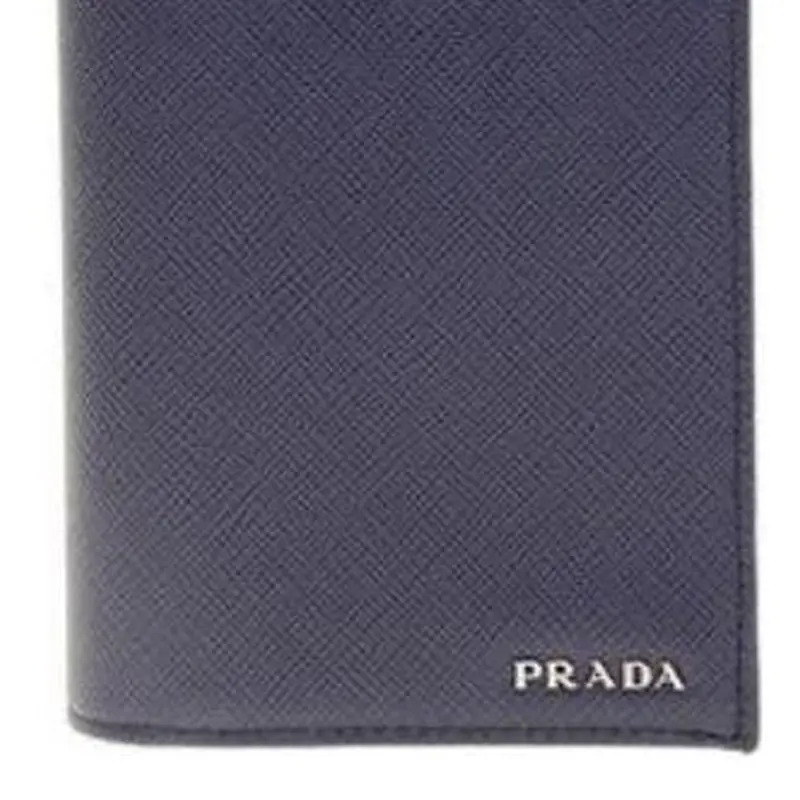 Кожаная клатч-кошелек мужская тёмно-синяя PRADA