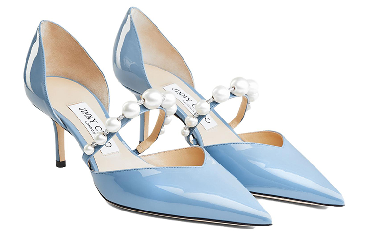 Туфли AURELIE из лакированной кожи дымчатого цвета, произведенные в Италии. Эти эффектные туфли с острым носком, каблуком-шпилькой высотой 6,5 см и ремешком, украшенным мерцающими белыми жемчужинами, делают их универсальными и уместными как днем, так и вечером.