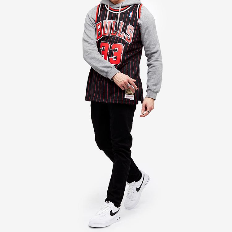 Скотти Пиппен, бывший профессиональный баскетболист НБА, игравший на позиции лёгкого форварда и получивший прозвище «Бэтмен», одет в ретро-джерси «Чикаго Буллз» Swingman Fan Edition MN 1995-96 годов. Джерси изготовлено из воссозданной сетчатой ткани с напечатанными на ней именем и годом игры игрока. Эта джерси воплощает дух сезона, предлагая как спортивные результаты, так и коллекционную ценность.