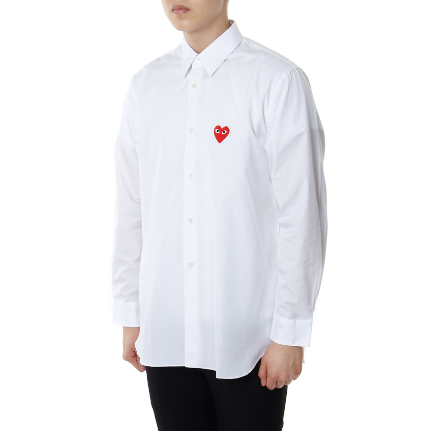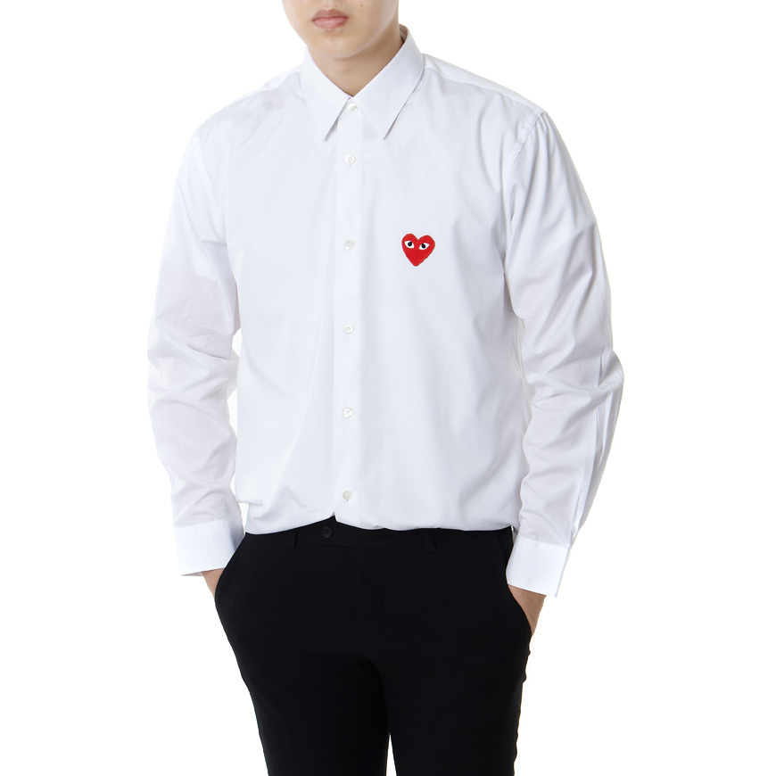 Белая рубашка на пуговицах с красной эмблемой CDG Play