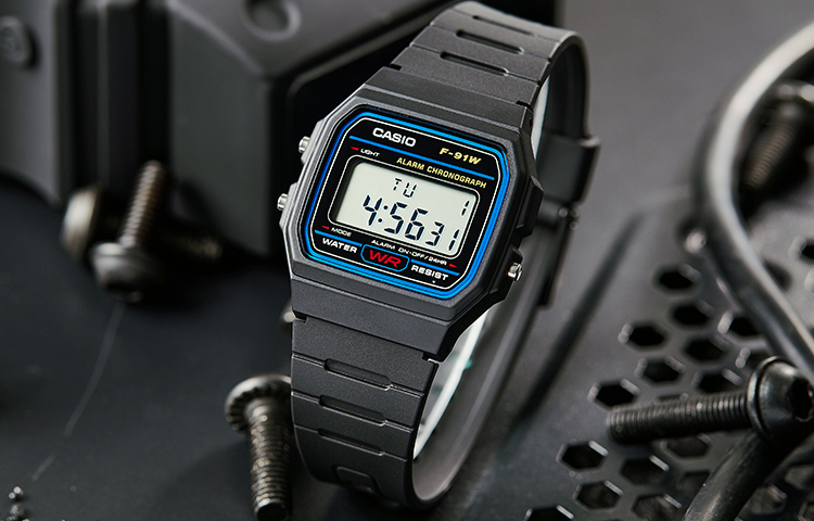 Унисекс молодежные черные часы F-91W-1 CASIO