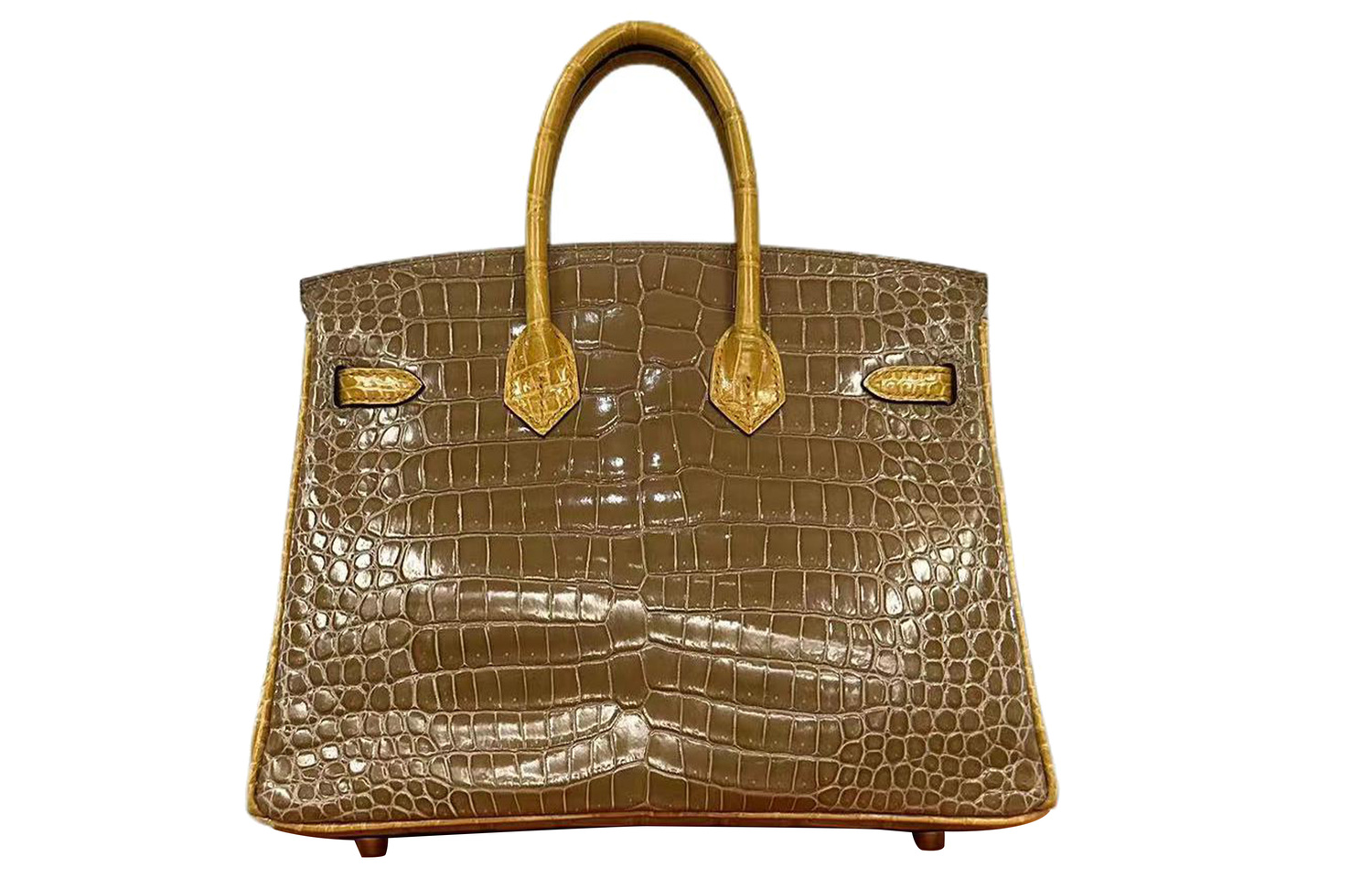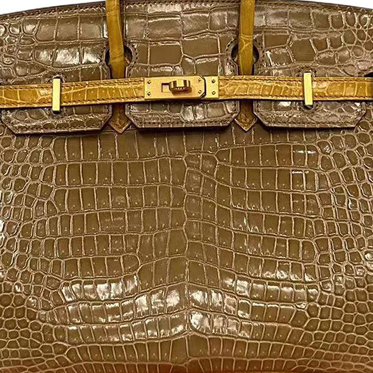 Биркин Кожа Крокодила Сумка Биркин Женская Нюд Песочный и Янтарный Жёлтый HERMES