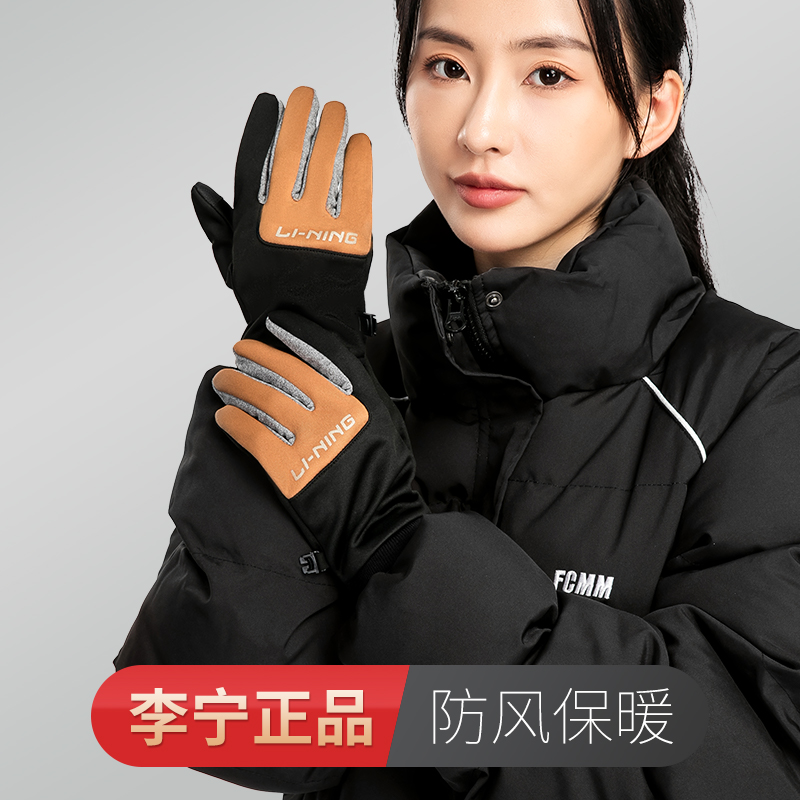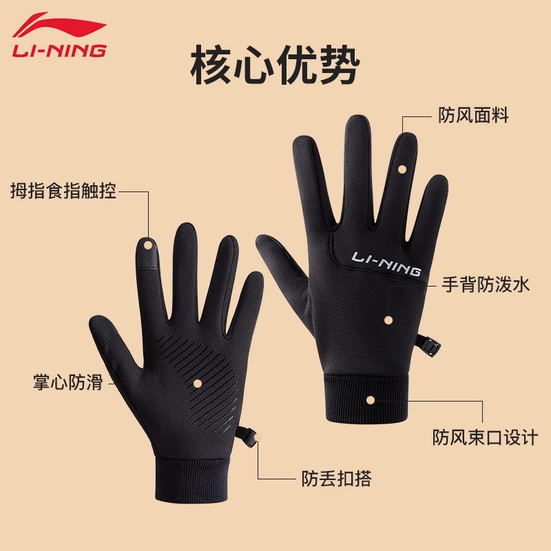 Велосипедная перчатка LiNing Unisex из полиэстера, эластана и ПУ черно-коричневого цвета