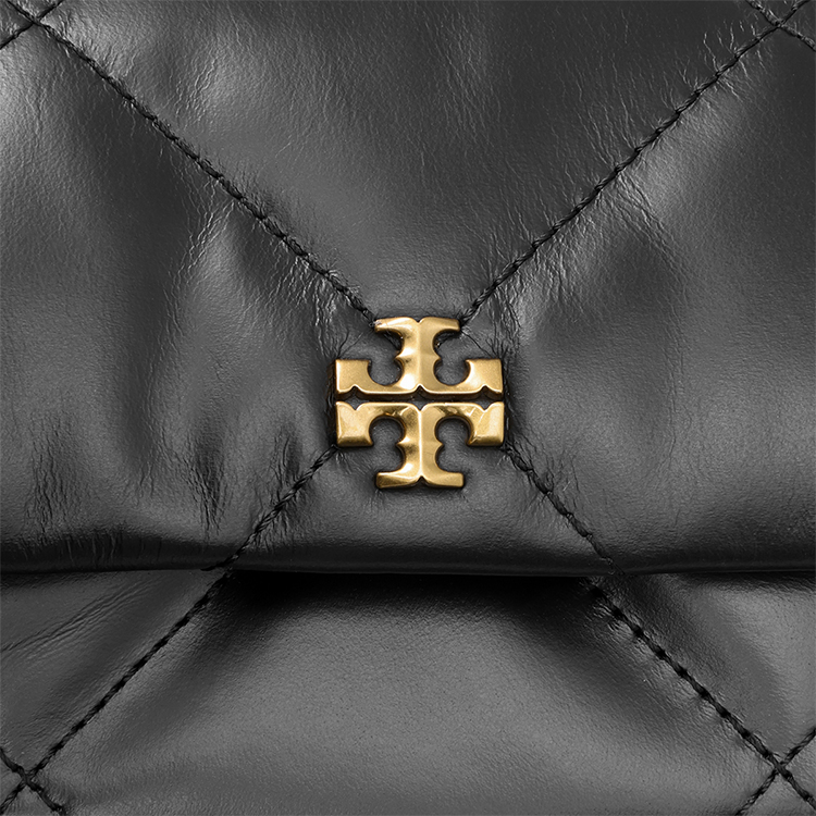 Миниатюрная сумка-кира с ромбовидной стежкой и клапаном черная TORY BURCH