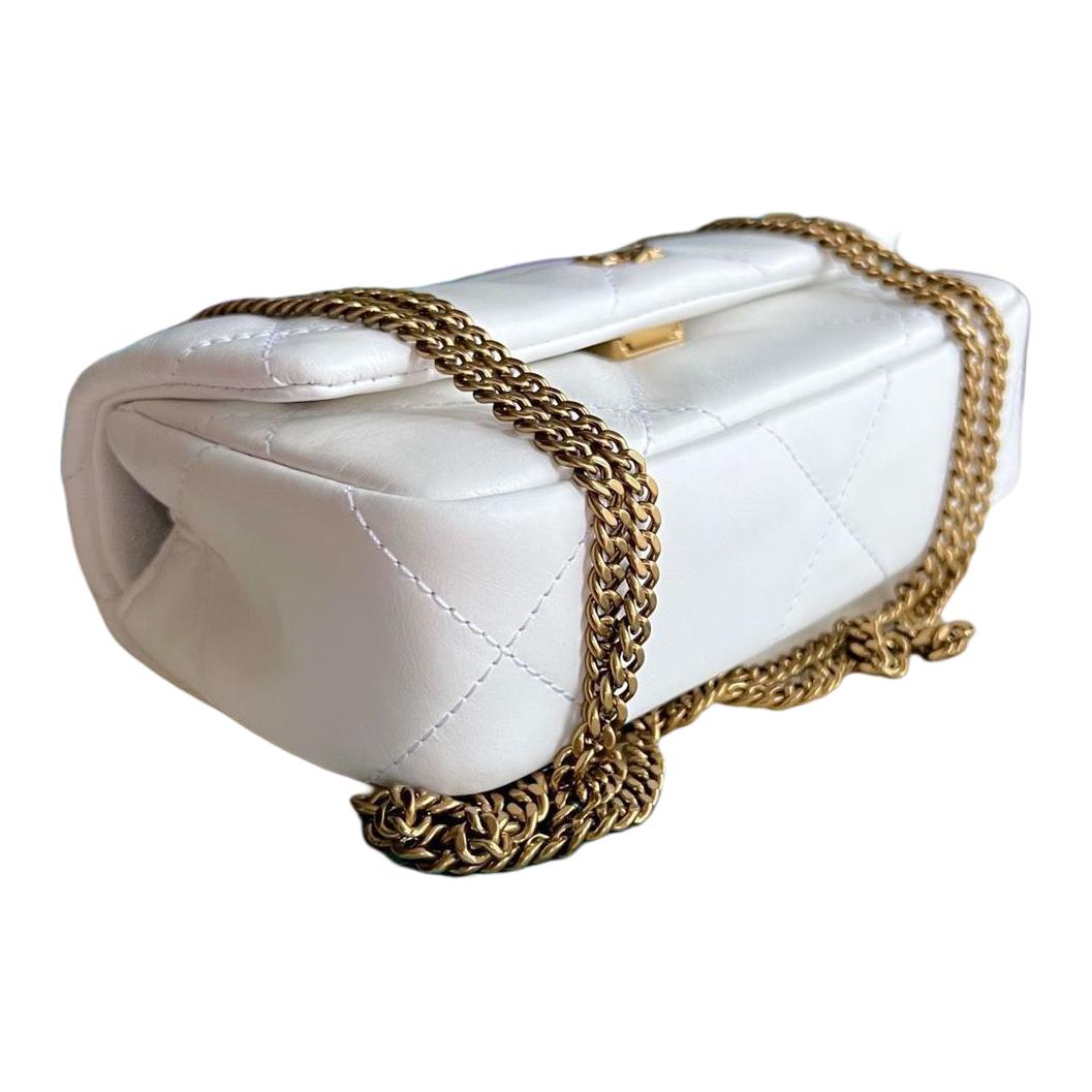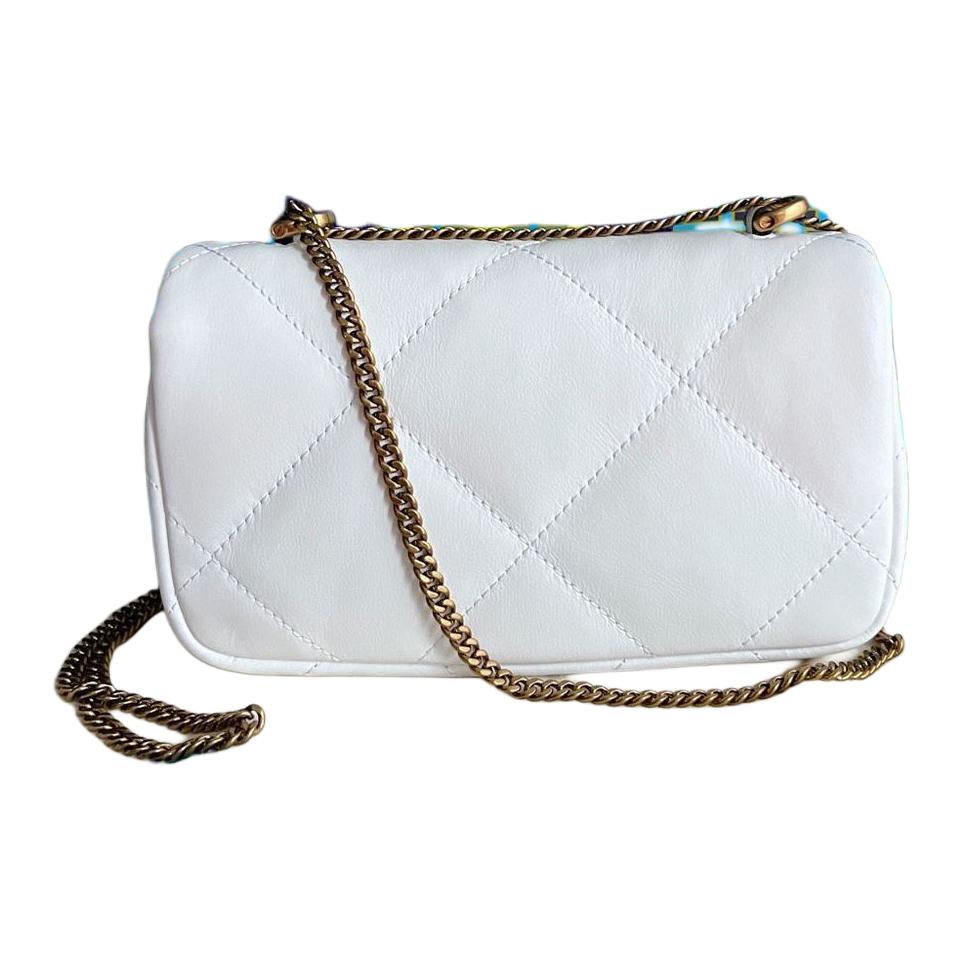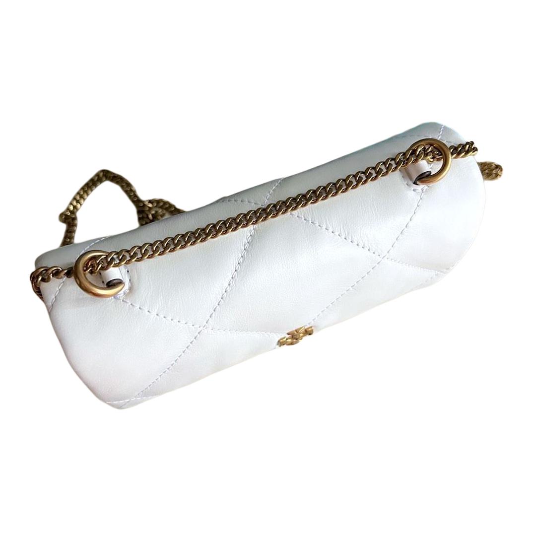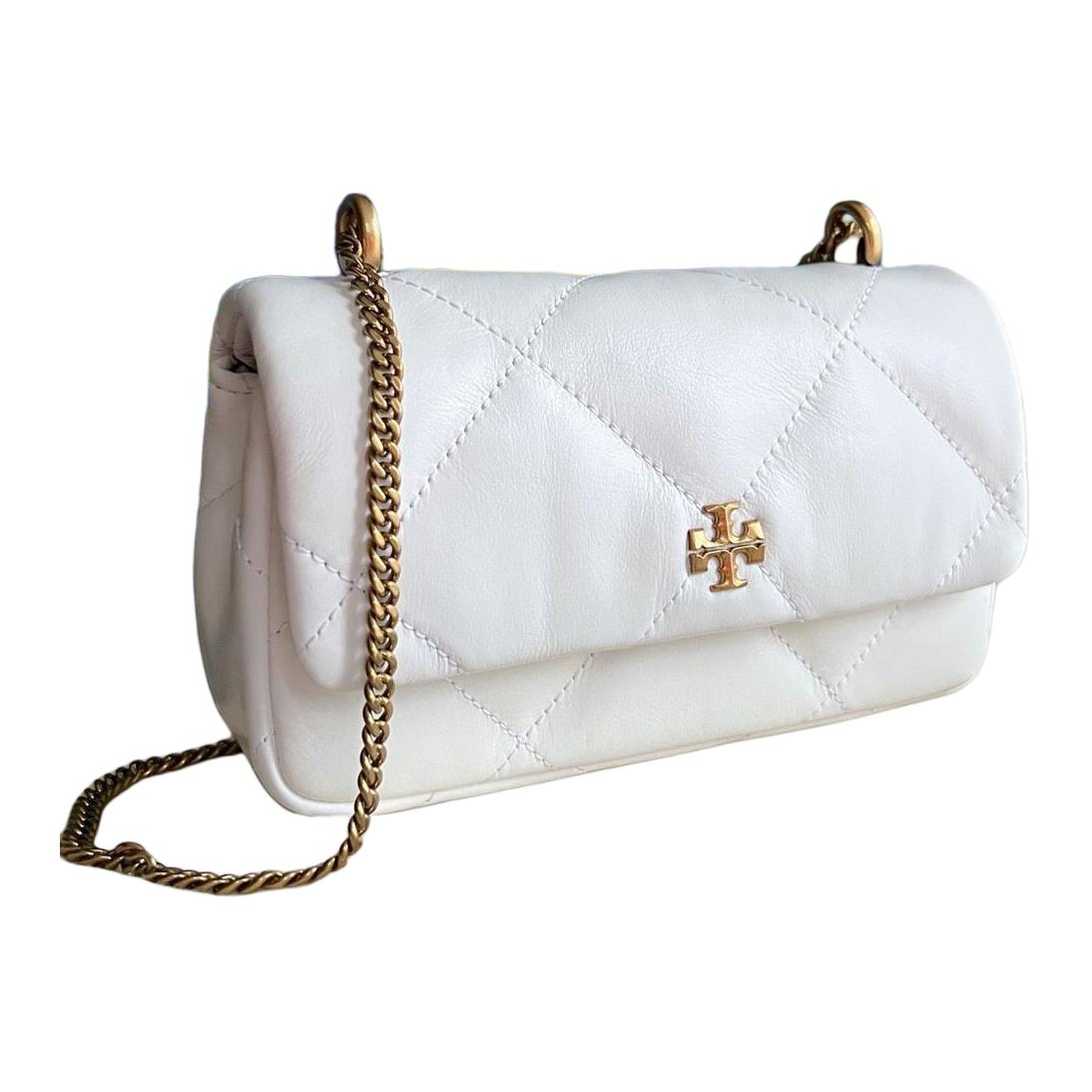 Миниатюрная сумка-кира с ромбовидным стеганием и откидным клапаном белого цвета Tory Burch