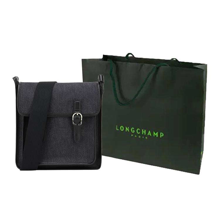 Хлопковая сумка через плечо унисекс черная LONGCHAMP