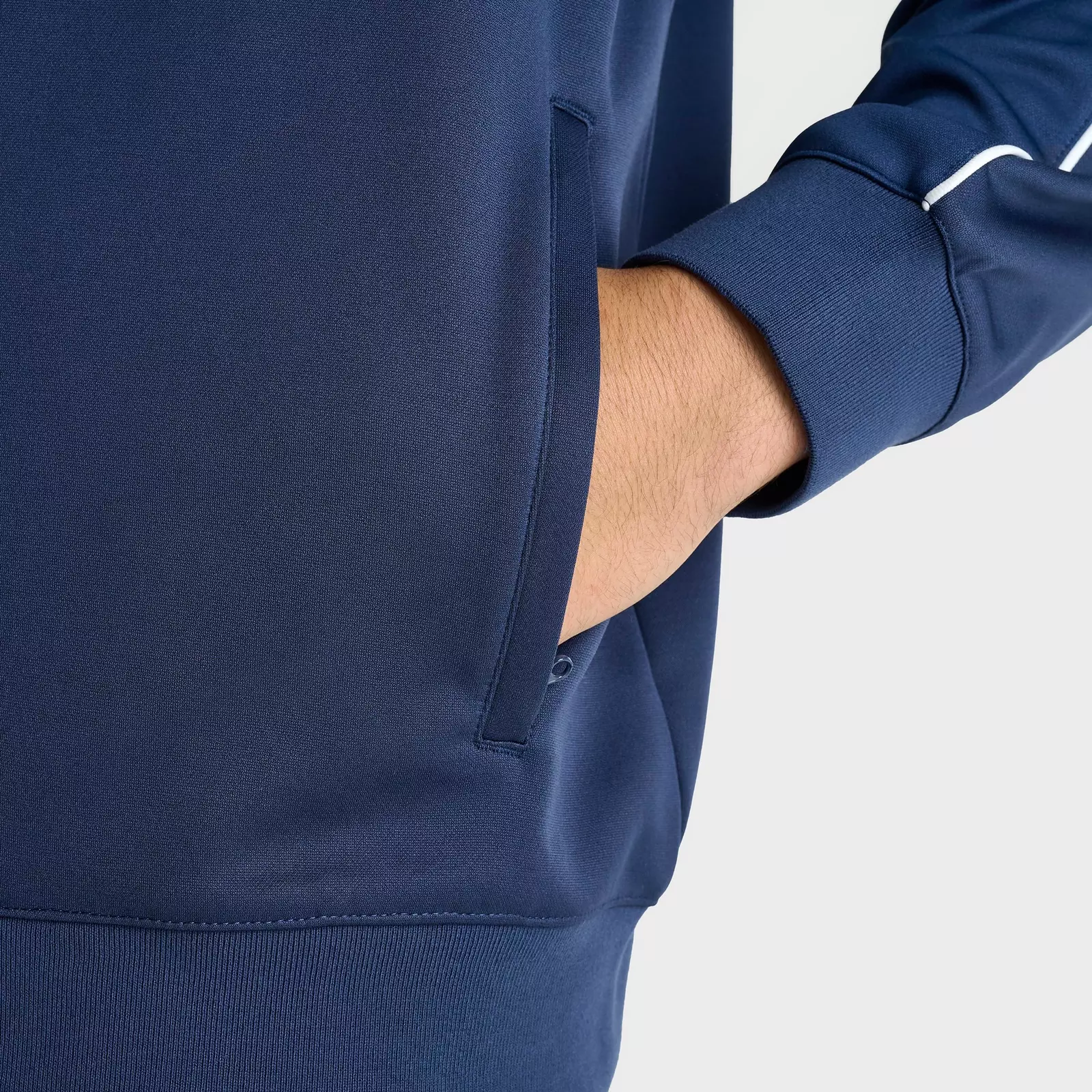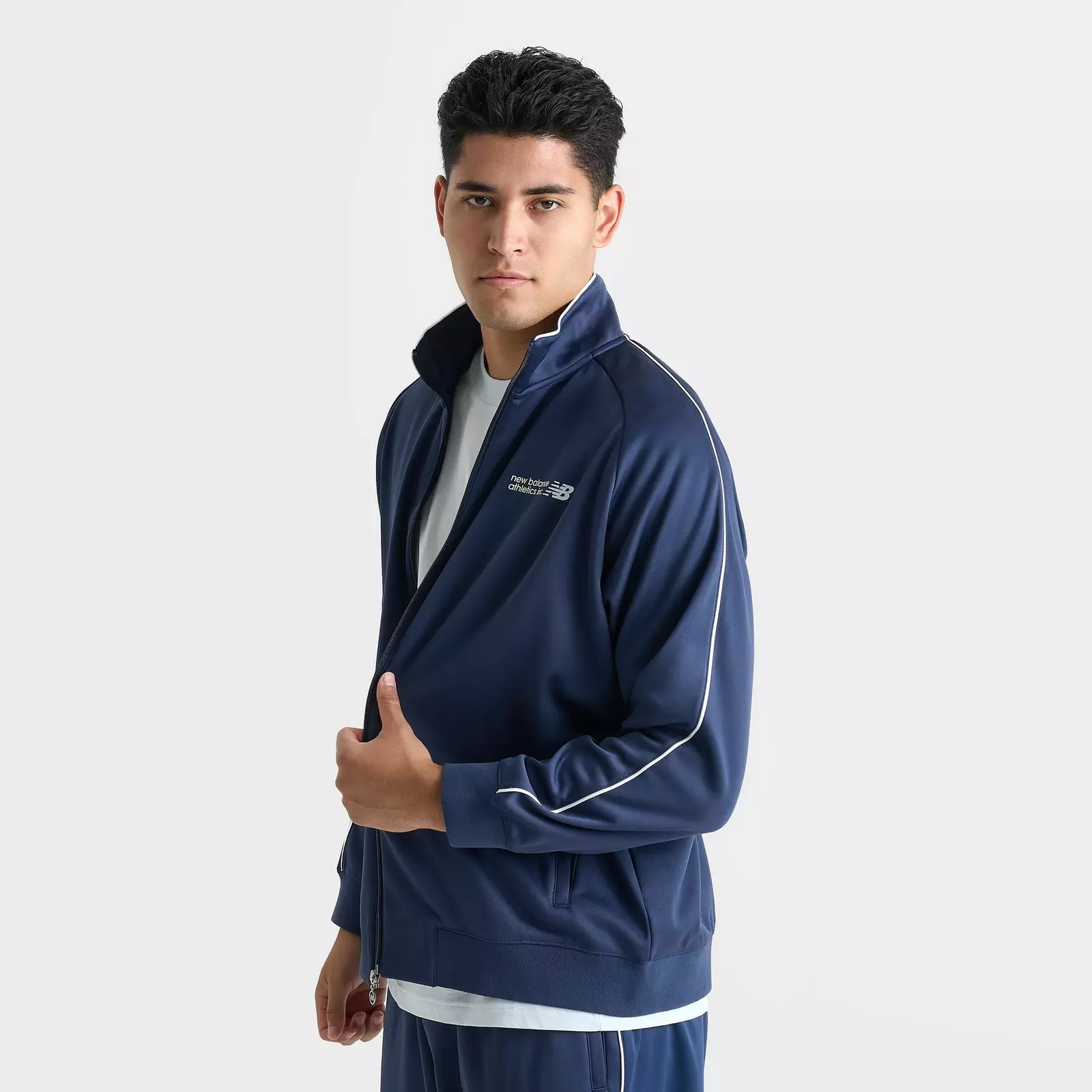 Молния по всей длине спереди и воротник-стойка для создания классического спортивного силуэта.