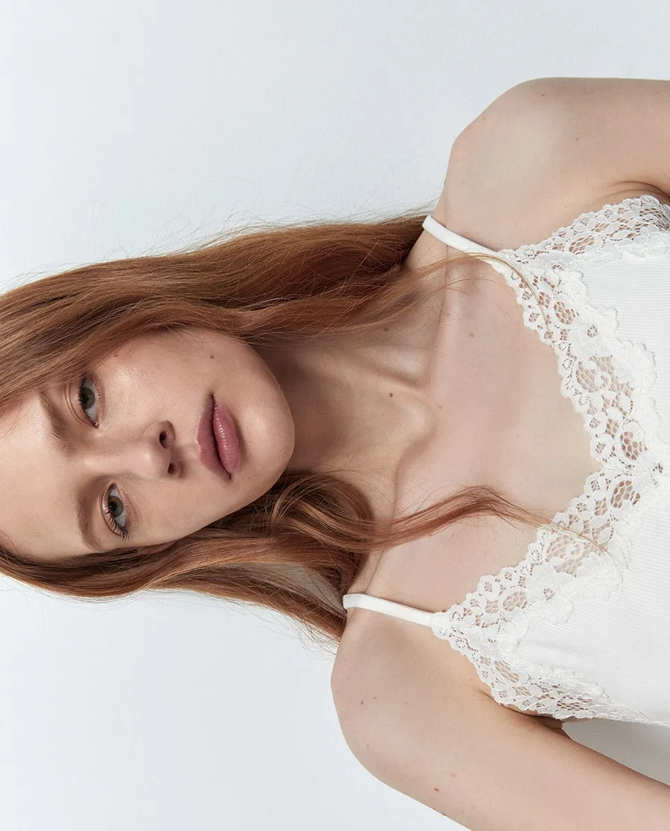 Рибана топ с кружевными деталями