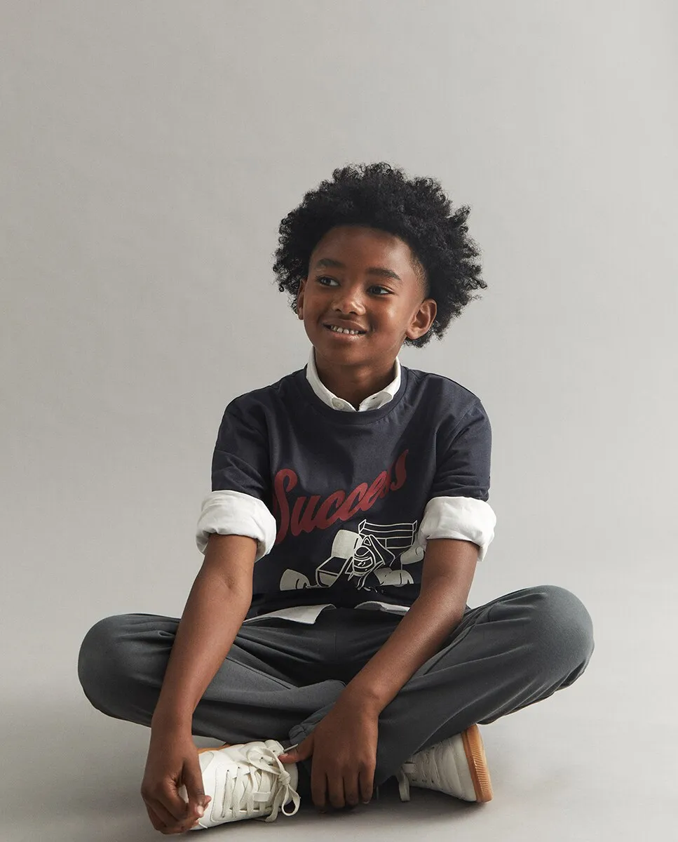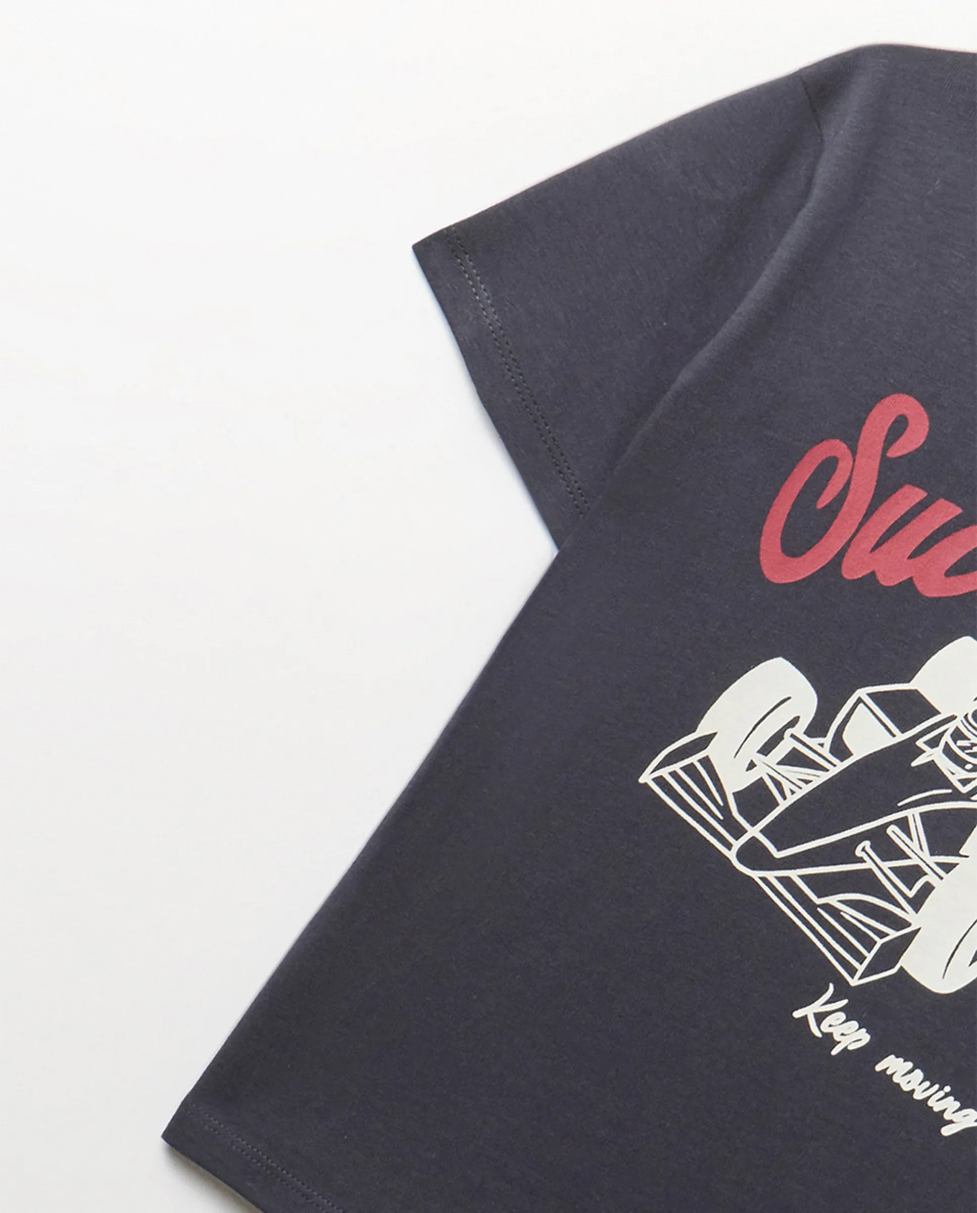 Базовая футболка с круглым вырезом и коротким рукавом. Декорированная принтом спереди. 100% хлопок
