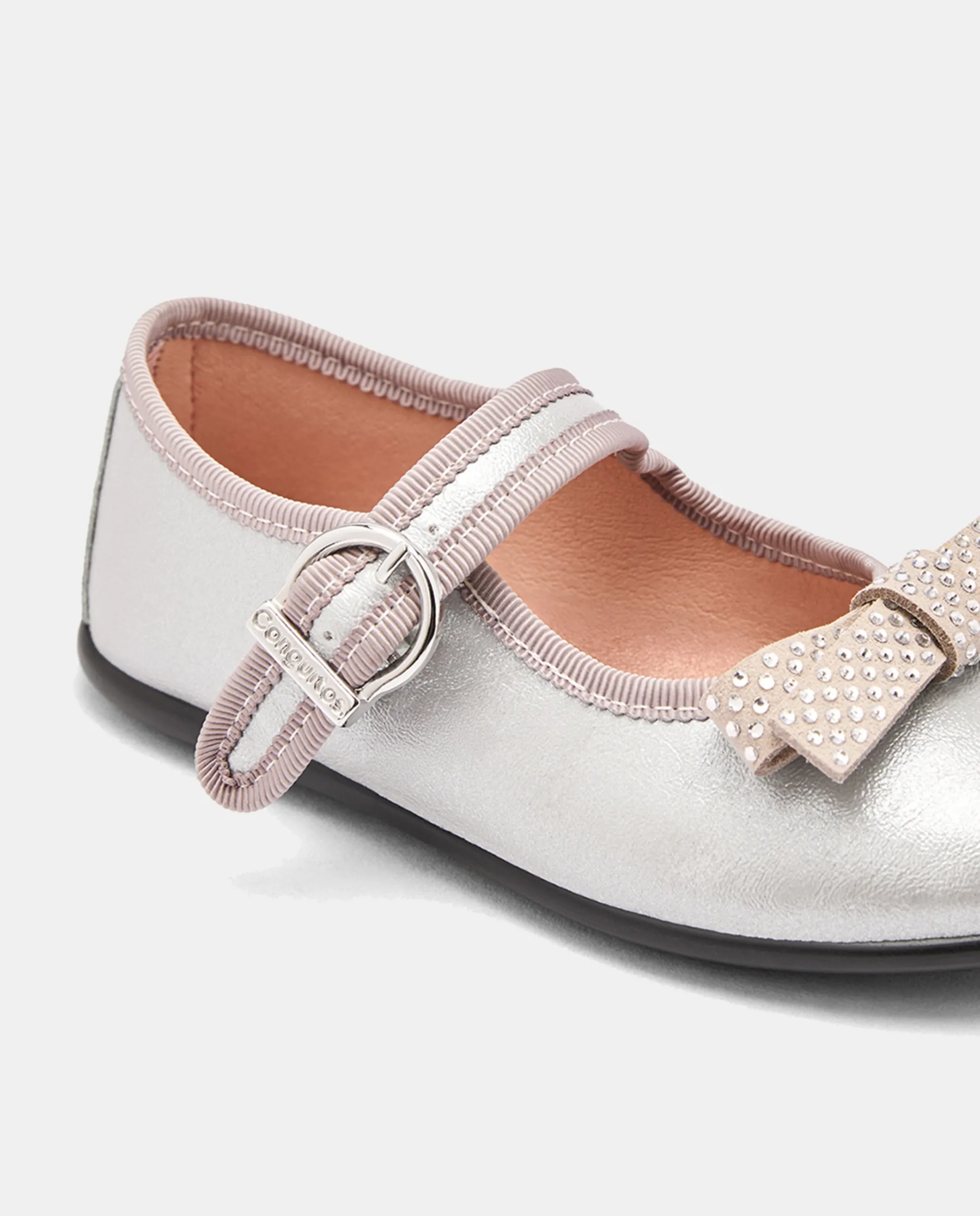 Балетки с металлизированным бантом и стразами Conguitos, серебряный