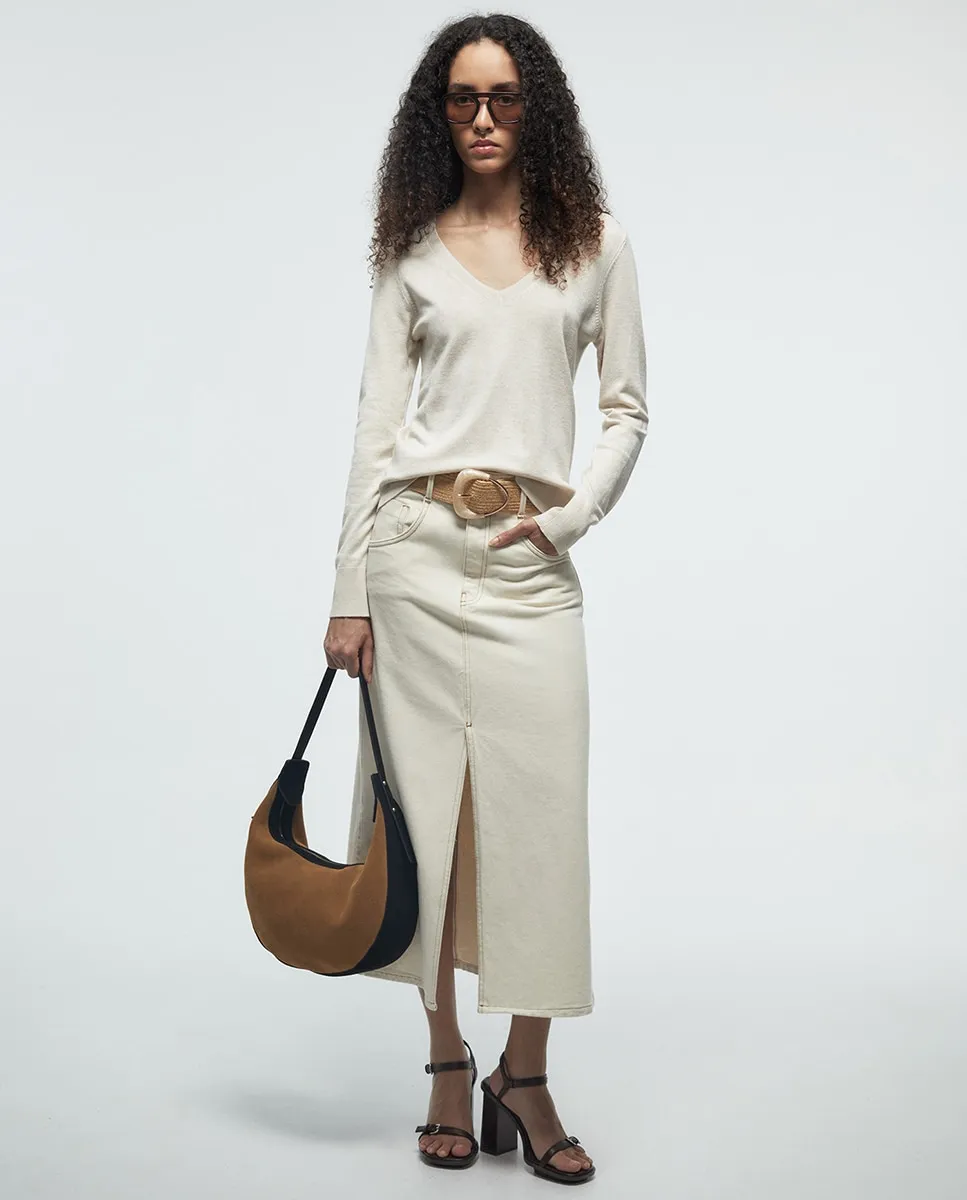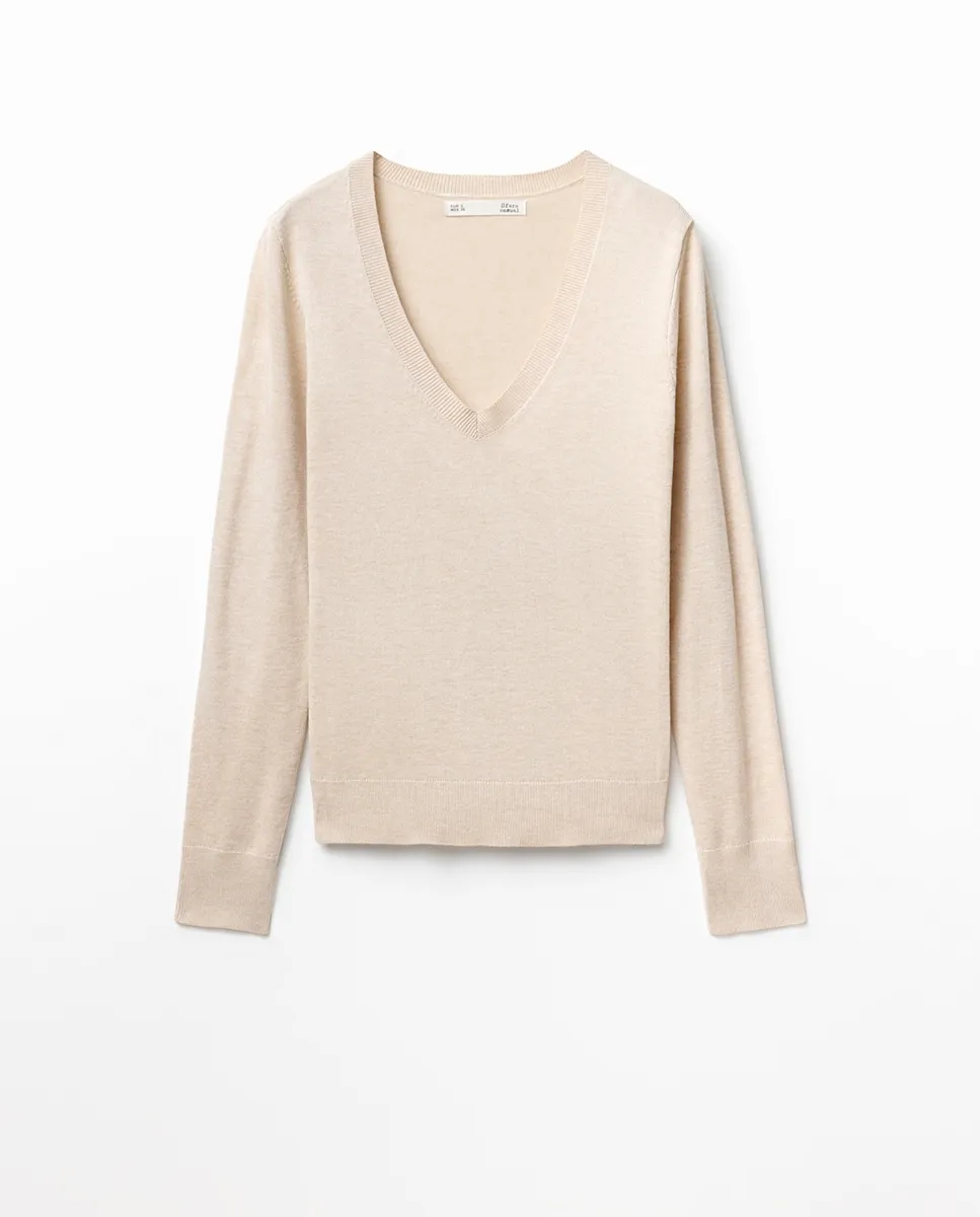 Основной однотонный джемпер с длинными рукавами и V-образным вырезом
