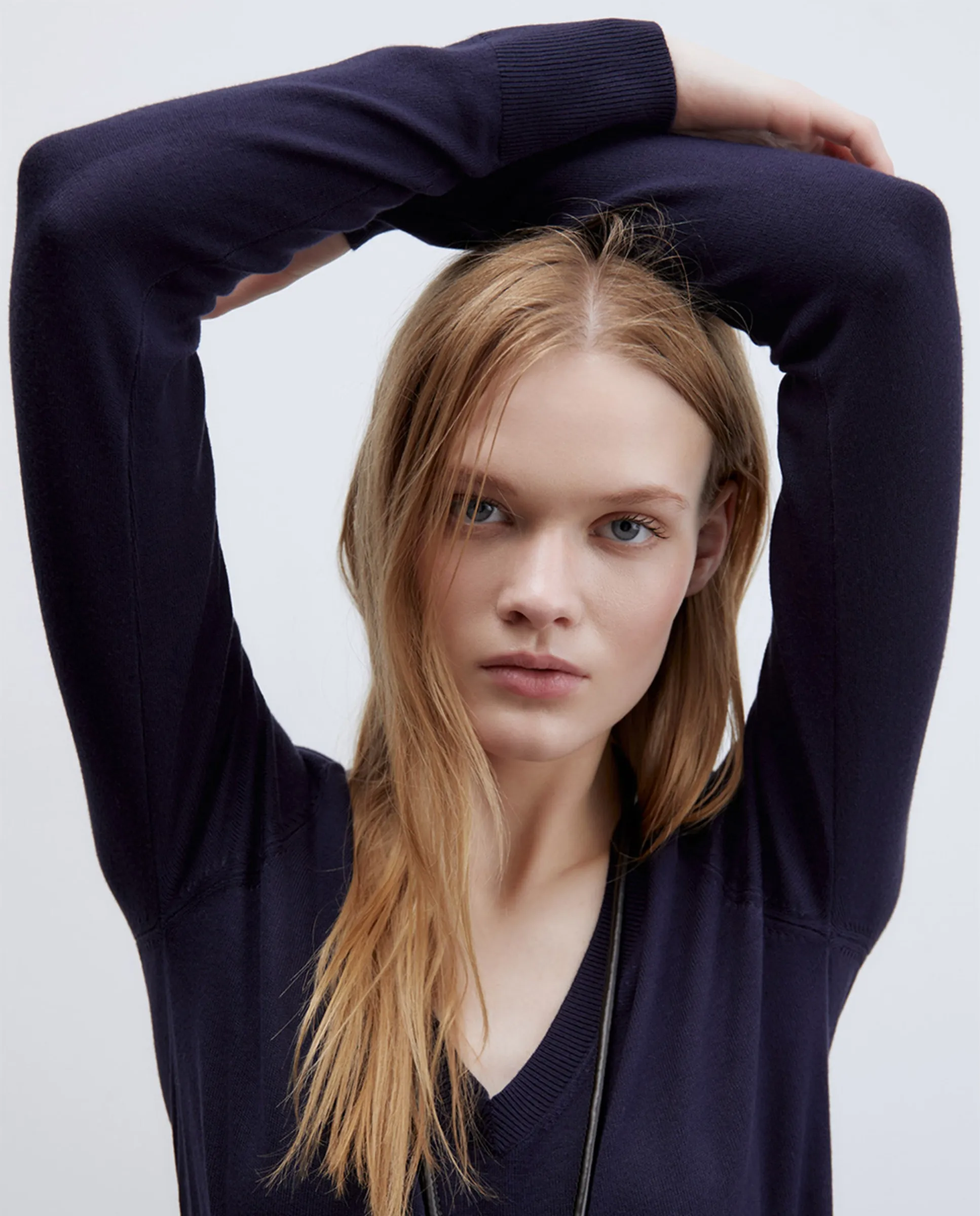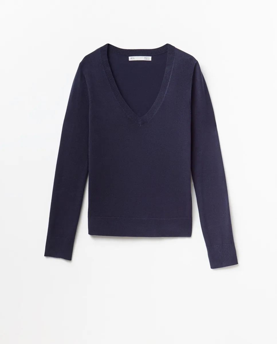 Основной однотонный джемпер с длинными рукавами и V-образным вырезом