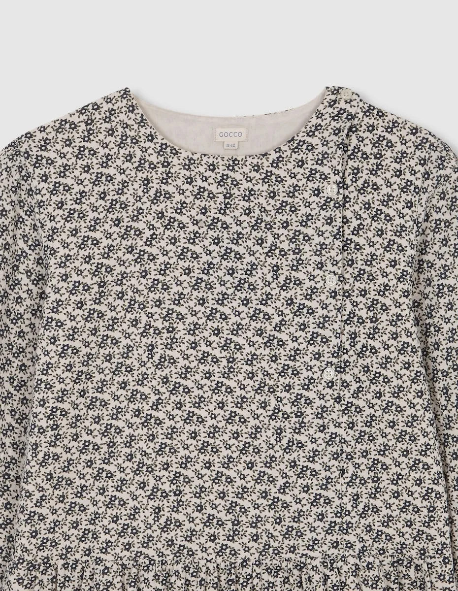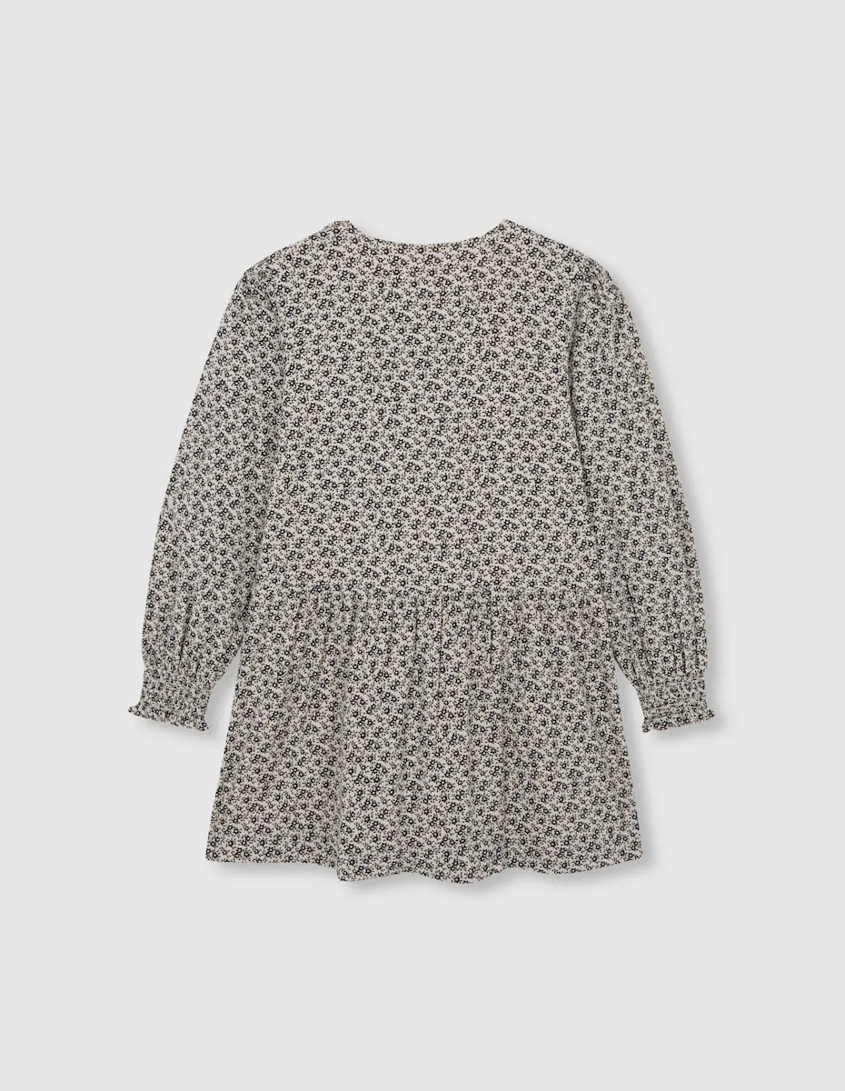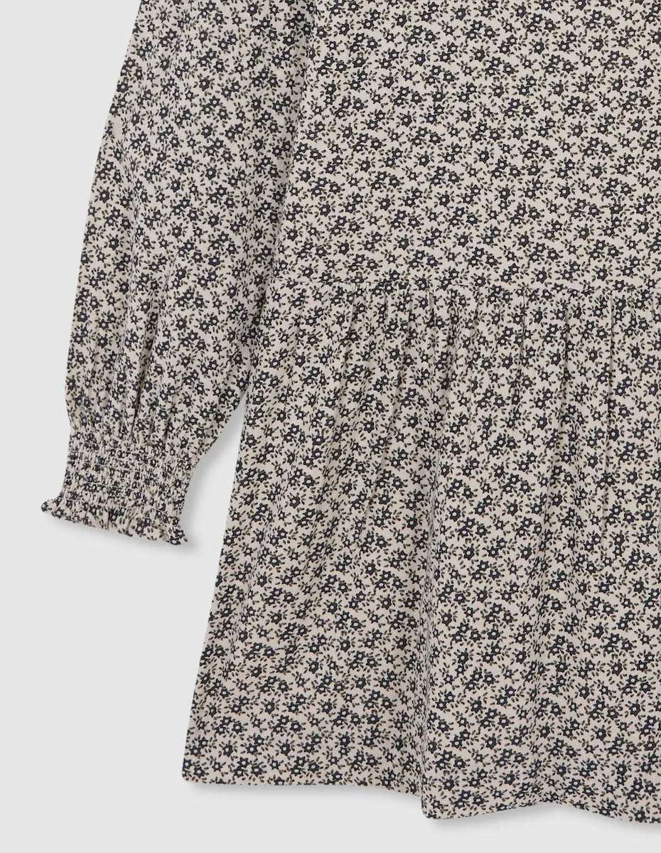 Платье с цветочным принтом, застегивающееся на пуговицы сбоку спереди, с длинными рукавами и резинкой на манжетах.