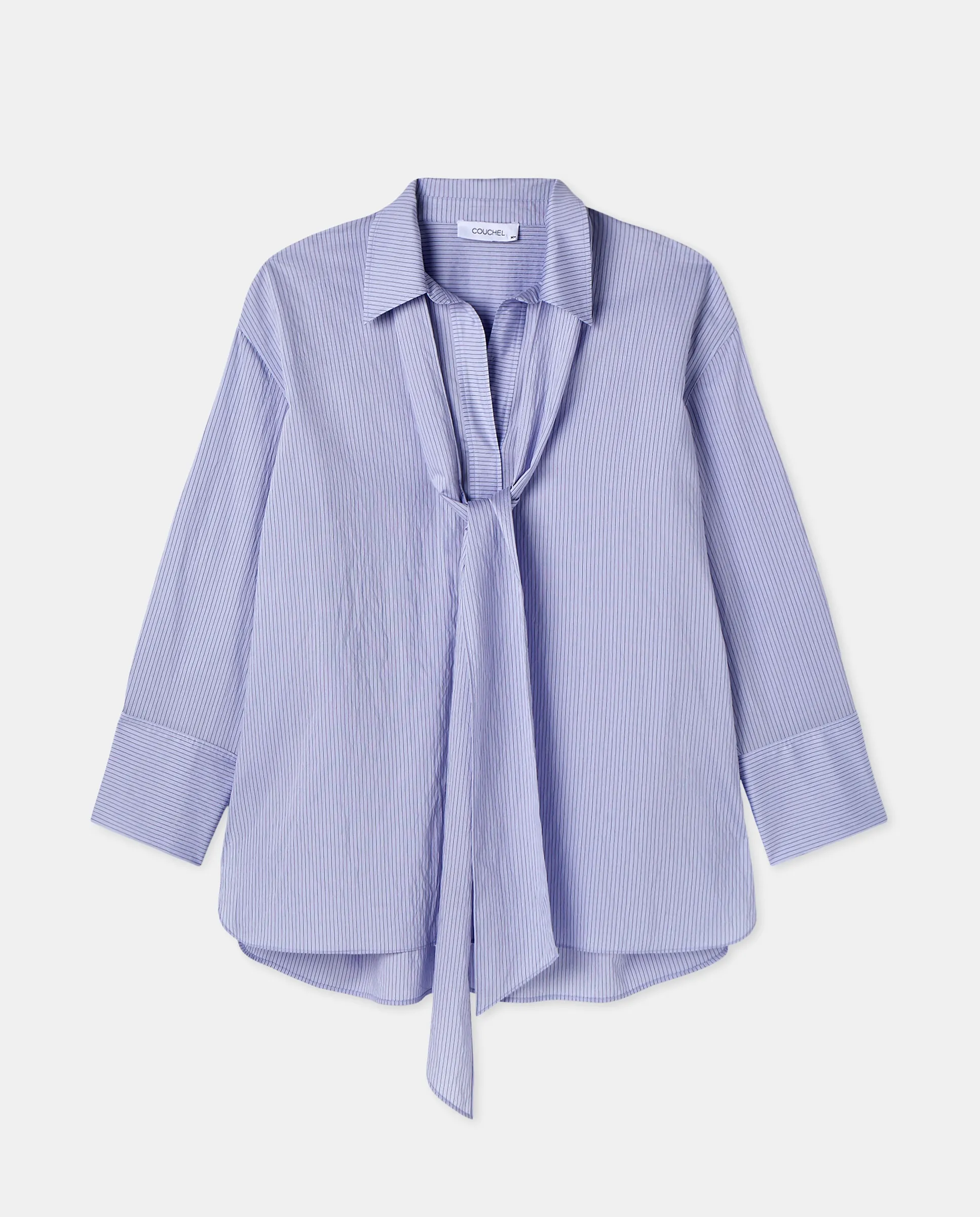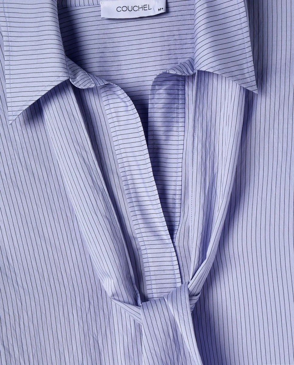 Блузка с длинными рукавами и завязкой в полоску.