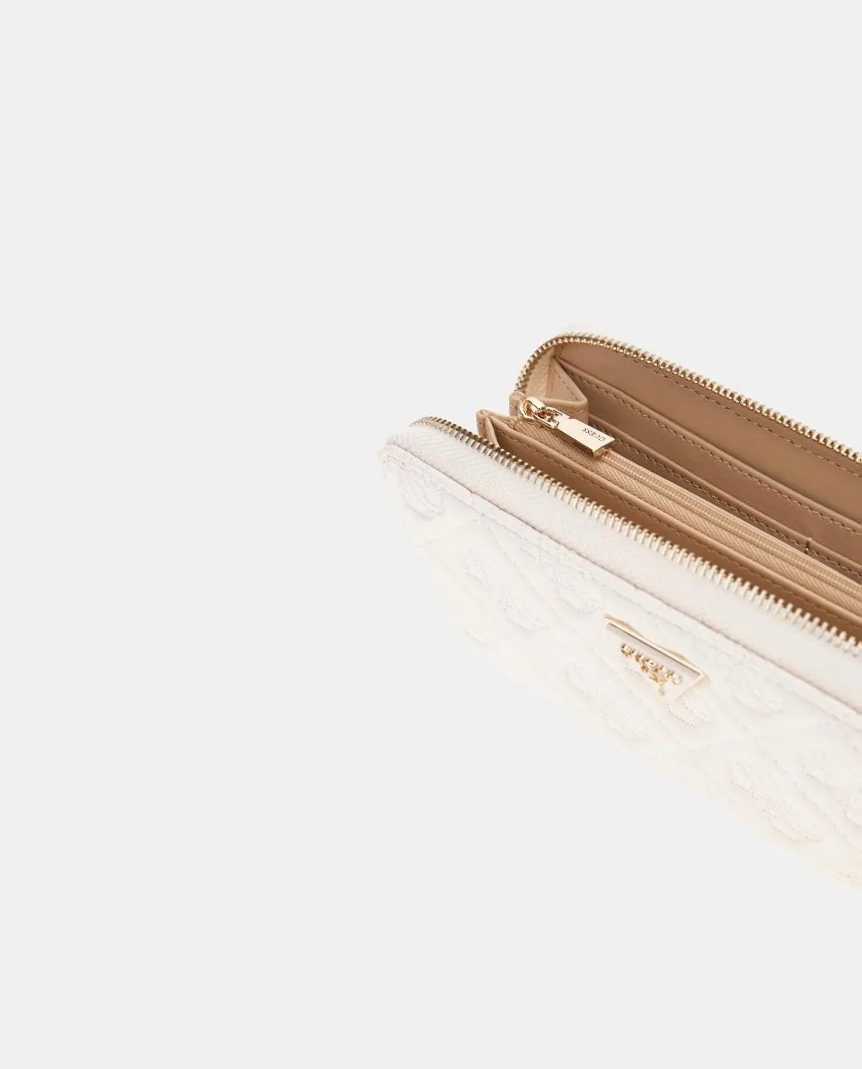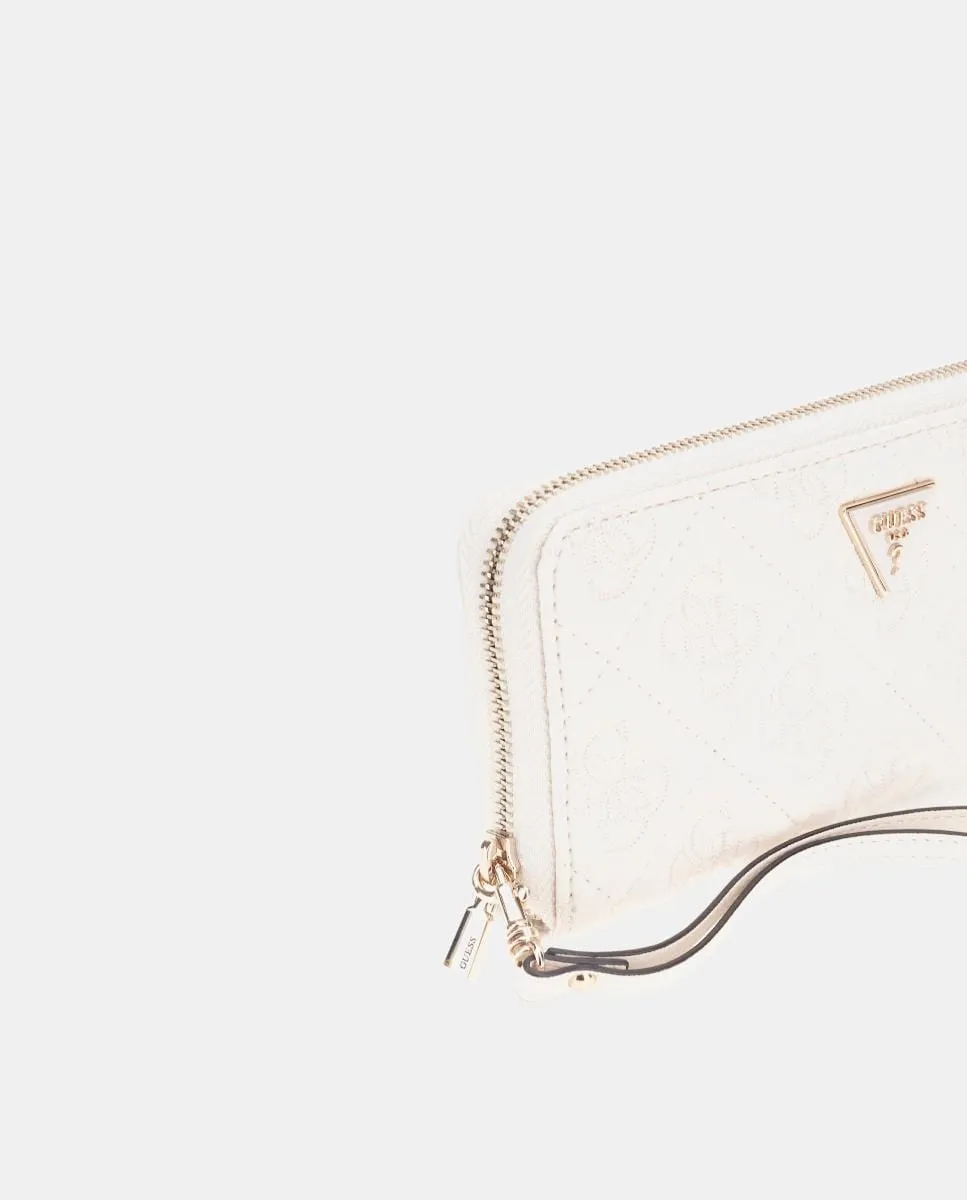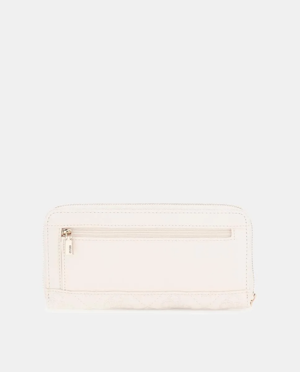 Модель кошелька Adelasia с мягкой отделкой 4g, молния и металлический логотип спереди в золотом цвете, отделения для карт, внутренний кошелек и задний наружный карман с молнией.
