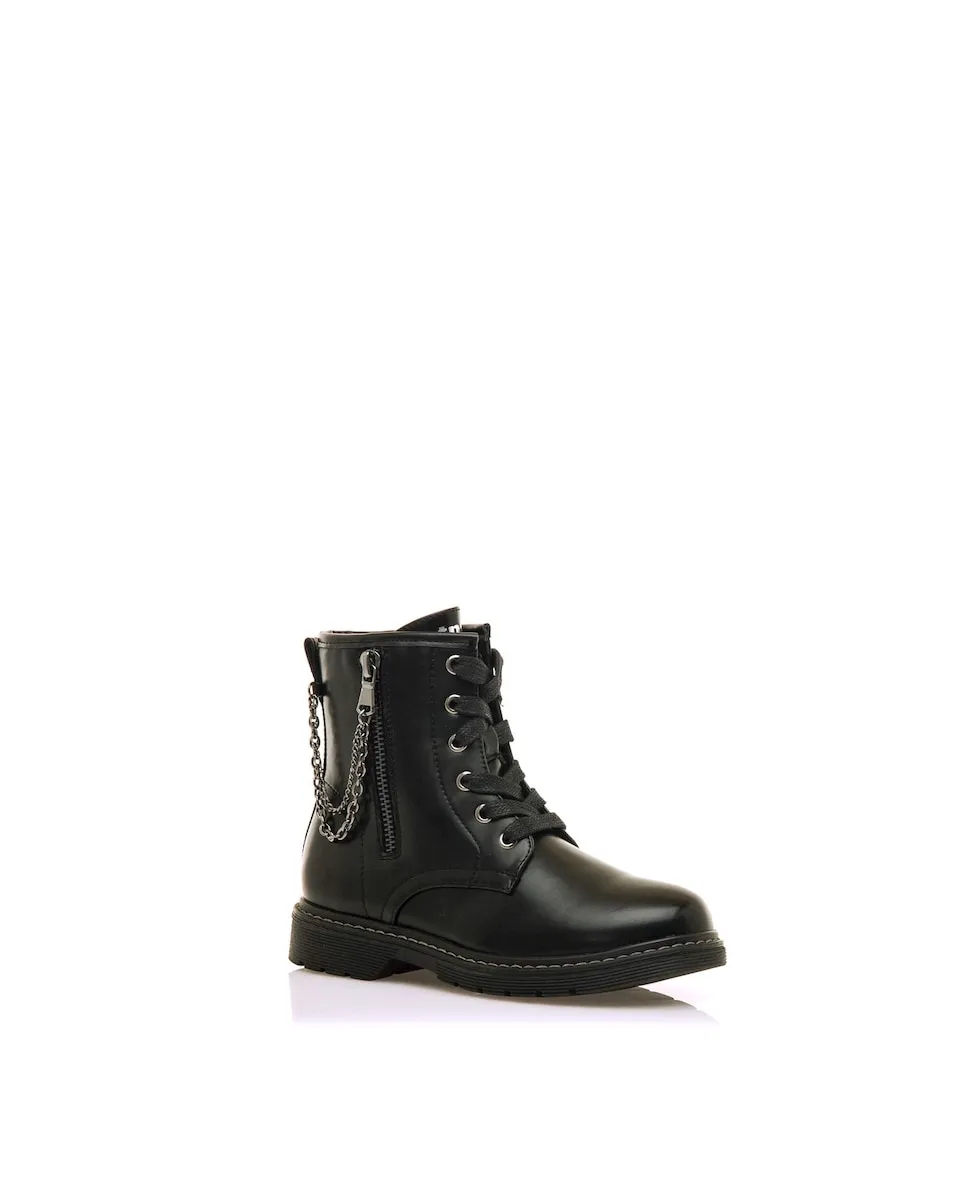 Военные ботинки для девочек бренда Mtng, модель Martina. Этот дизайн сочетает современный стиль с яркими деталями, такими как декоративные цепочки. Их шнуровка и боковая молния обеспечивают удобную и практичную посадку. Плоская подошва гарантирует стабильность и комфорт для повседневного использования.