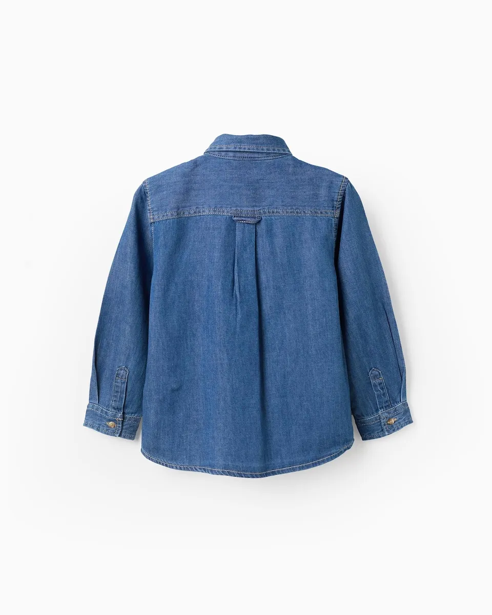 Детская джинсовая рубашка 100% хлопок с карманом Zippy, синий