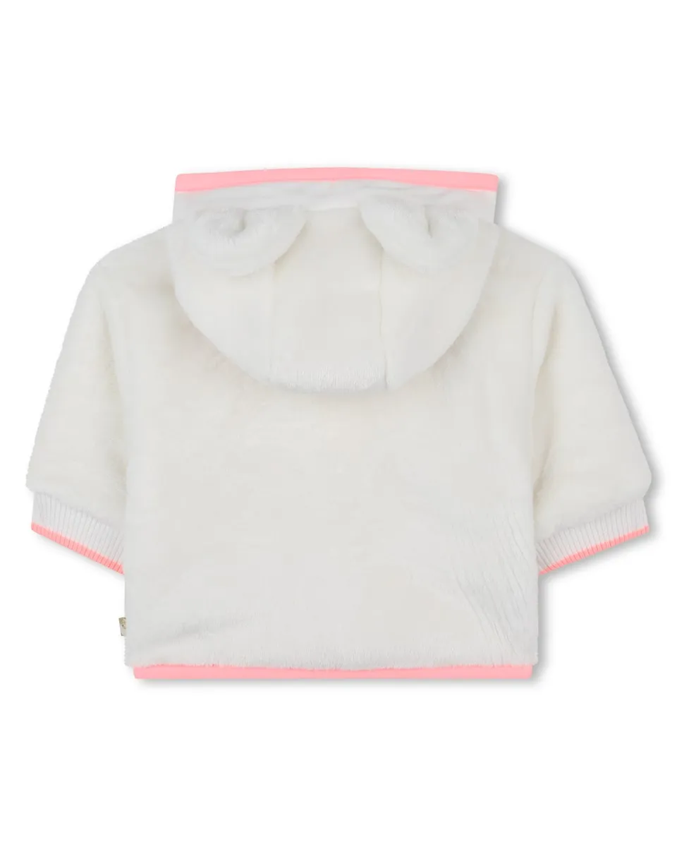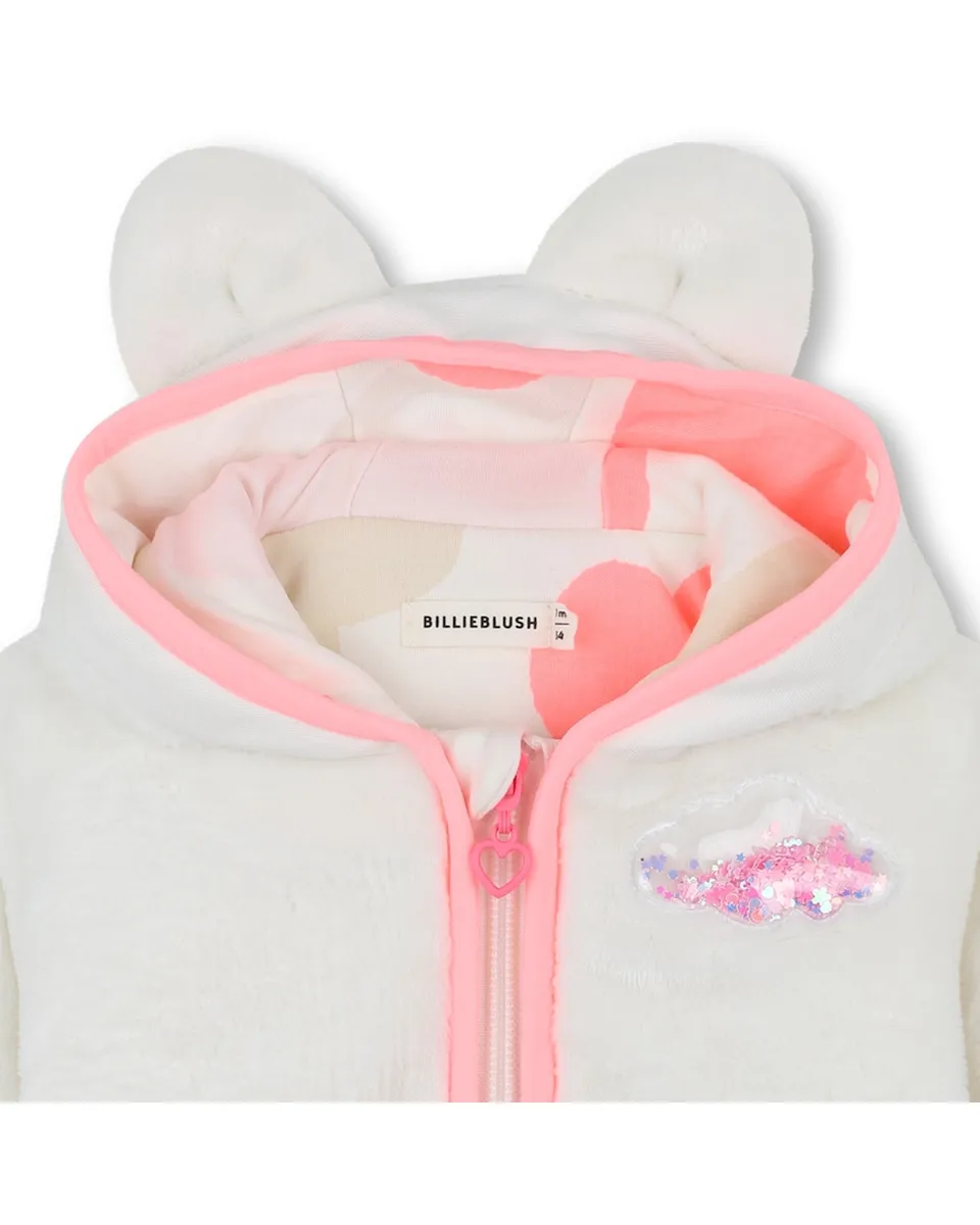 Неповторимый плащ с очарованием! BILLIEBLUSH изготовлен из ультра-мягкой флисовой ткани и украшен капюшоном с милыми ушками. Нам нравится подкладка и молния с узором в сердечки, идеально подходящие для стильного выхода в холодные дни.