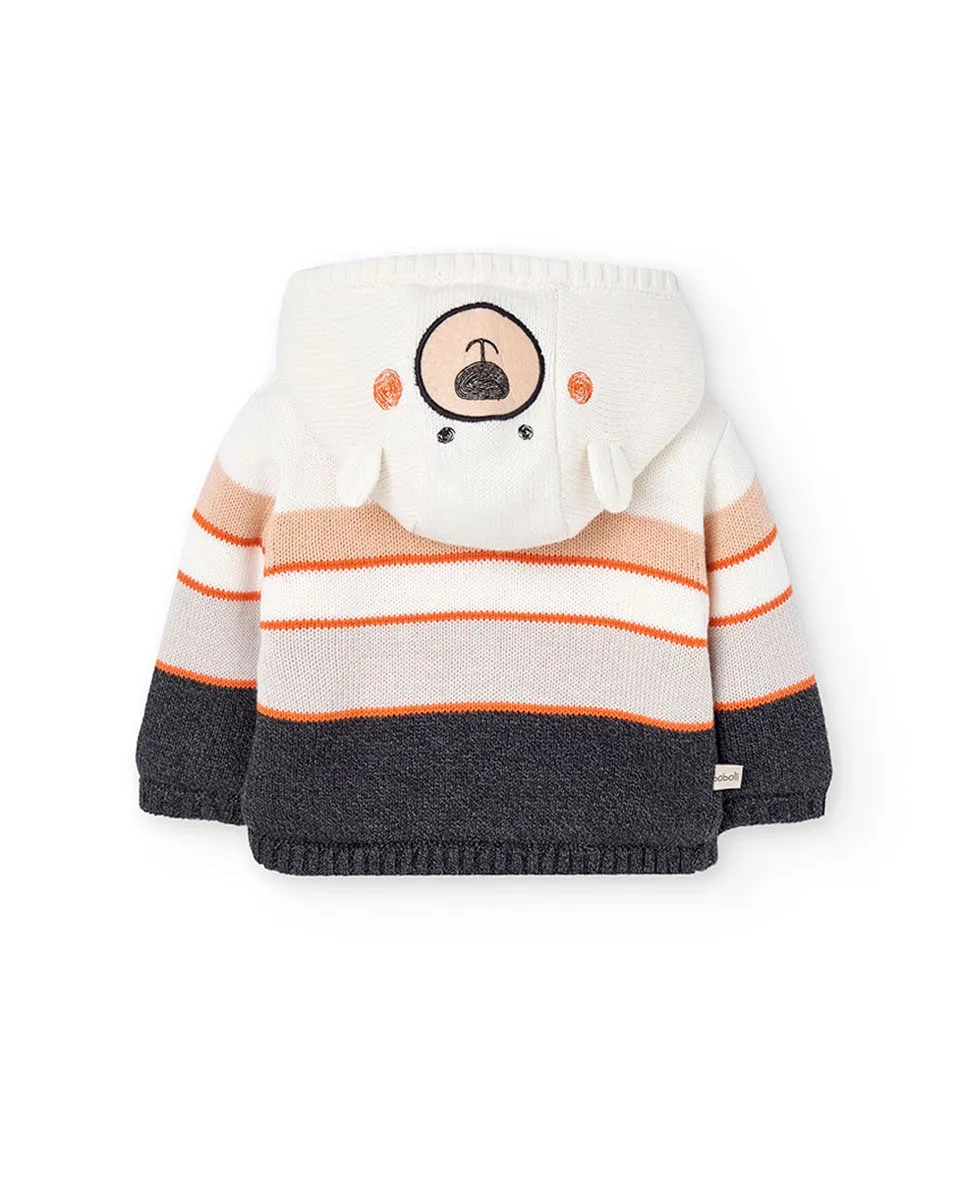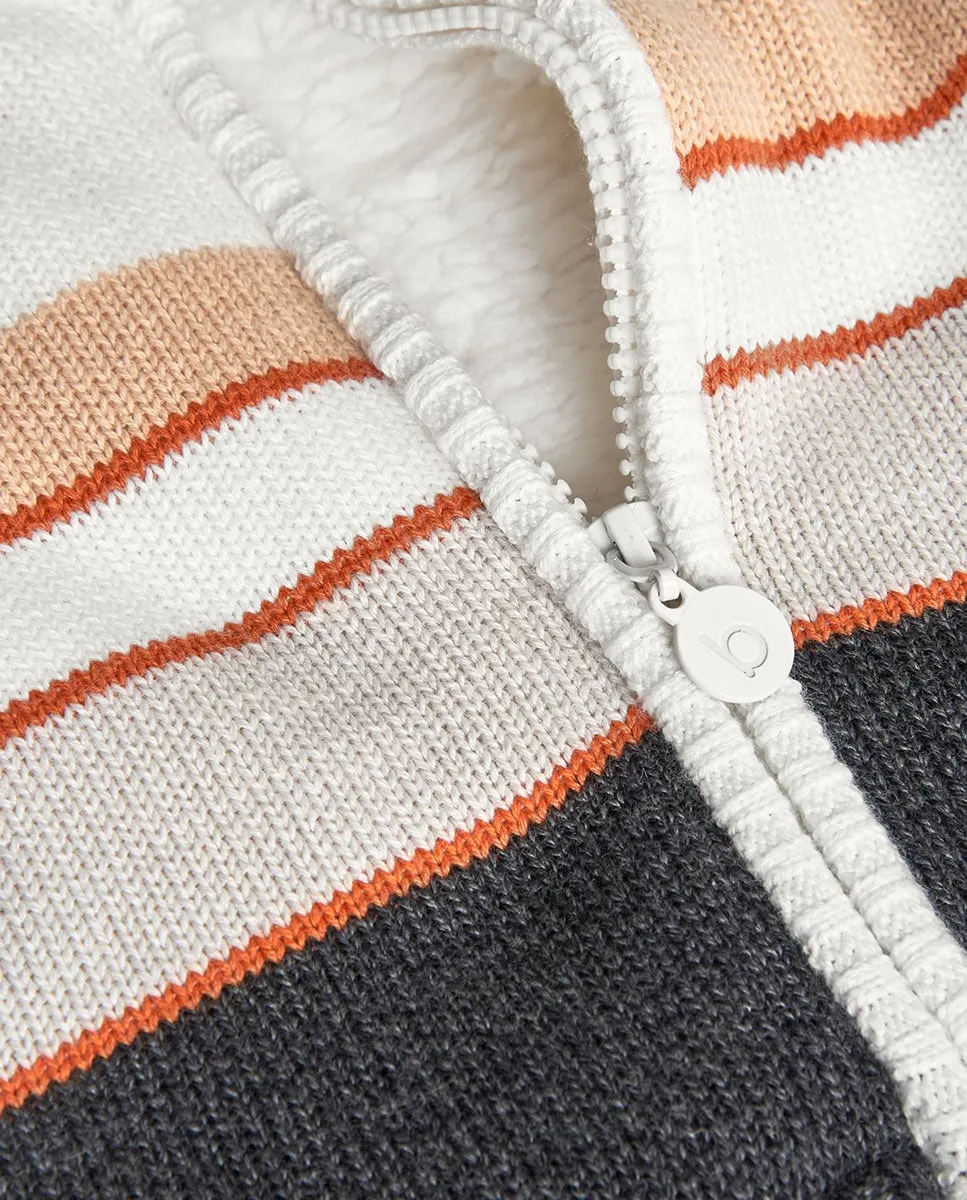 Детская вязаная куртка с цветными полосками, идеально подходит для того, чтобы держать малышей в тепле осенью и зимой. Включает удобный капюшон и застежку на молнии для дополнительной защиты от холода. Изготовлена из мягкой и приятной на ощупь ткани, что обеспечивает максимальный комфорт. Доступна в размерах от 1 месяца до 2 лет, адаптируясь к росту вашего малыша. Ее универсальный стиль легко комбинируется с другими детскими вещами, создавая очаровательный образ для любого случая.