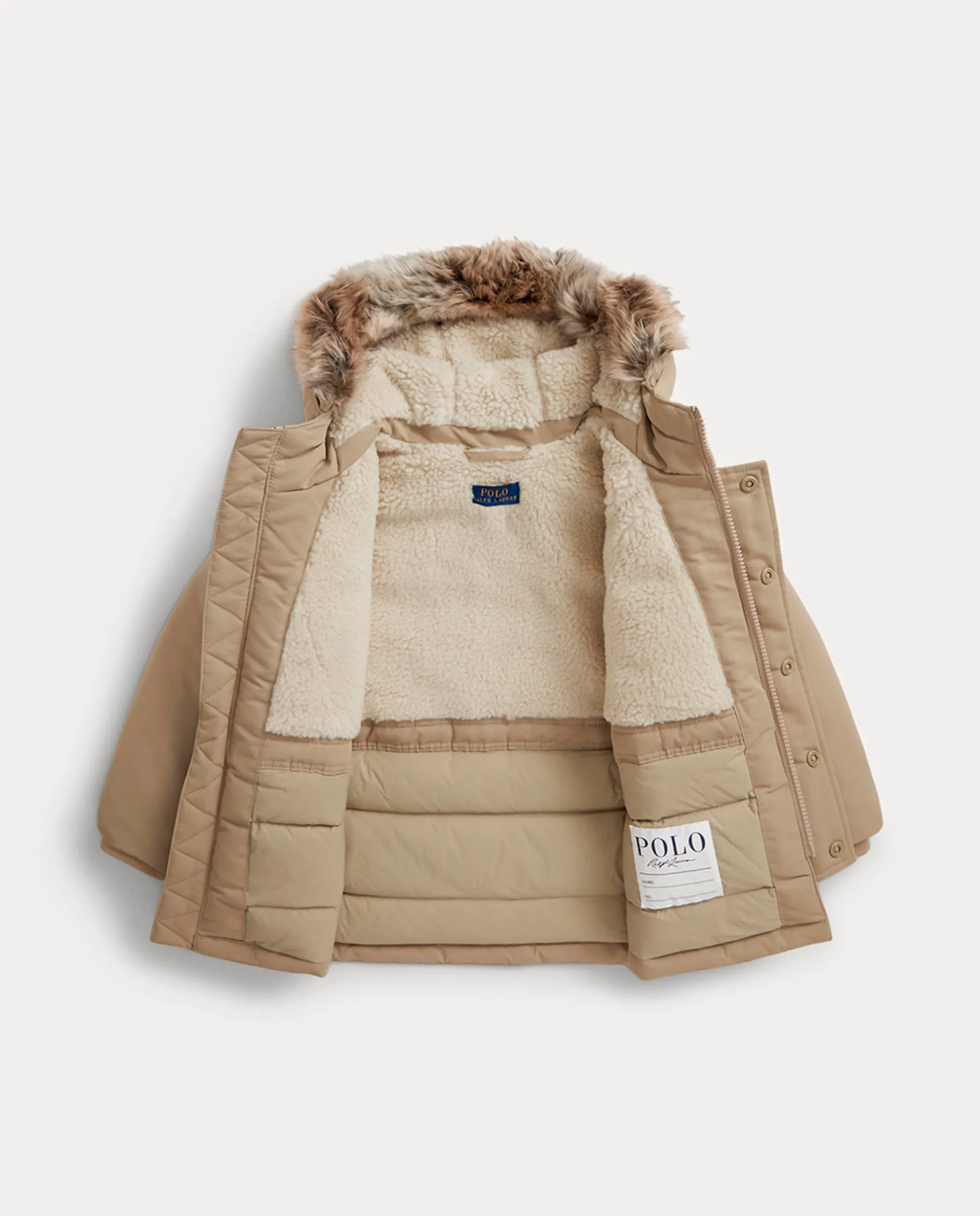 Детская парка с меховым капюшоном Polo Ralph Lauren, бежевый