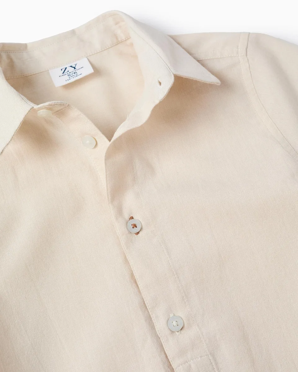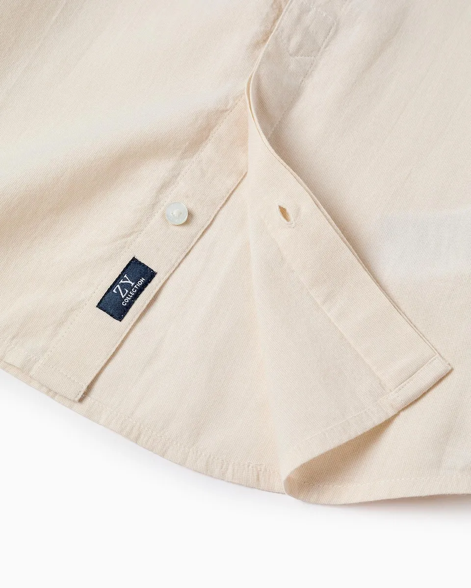 Коллекция Brothers & Sisters. Рубашка с коротким рукавом из ткани с мелкой сеткой для мальчика, 100% хлопок. Видимые кнопки в верхней части и спрятанные в нижней. Закругленный низ. Классический и элегантный вариант для сочетания с другими элементами из той же коллекции! Big Me: кнопка с контрастной нитью и петлей, чтобы ребёнок легко мог определить, с какой кнопки начинать застёгивать, способствуя его автономии.