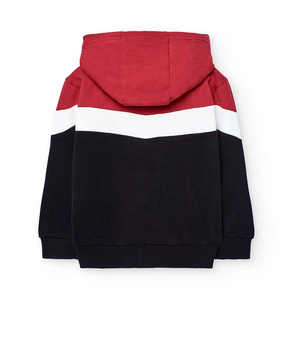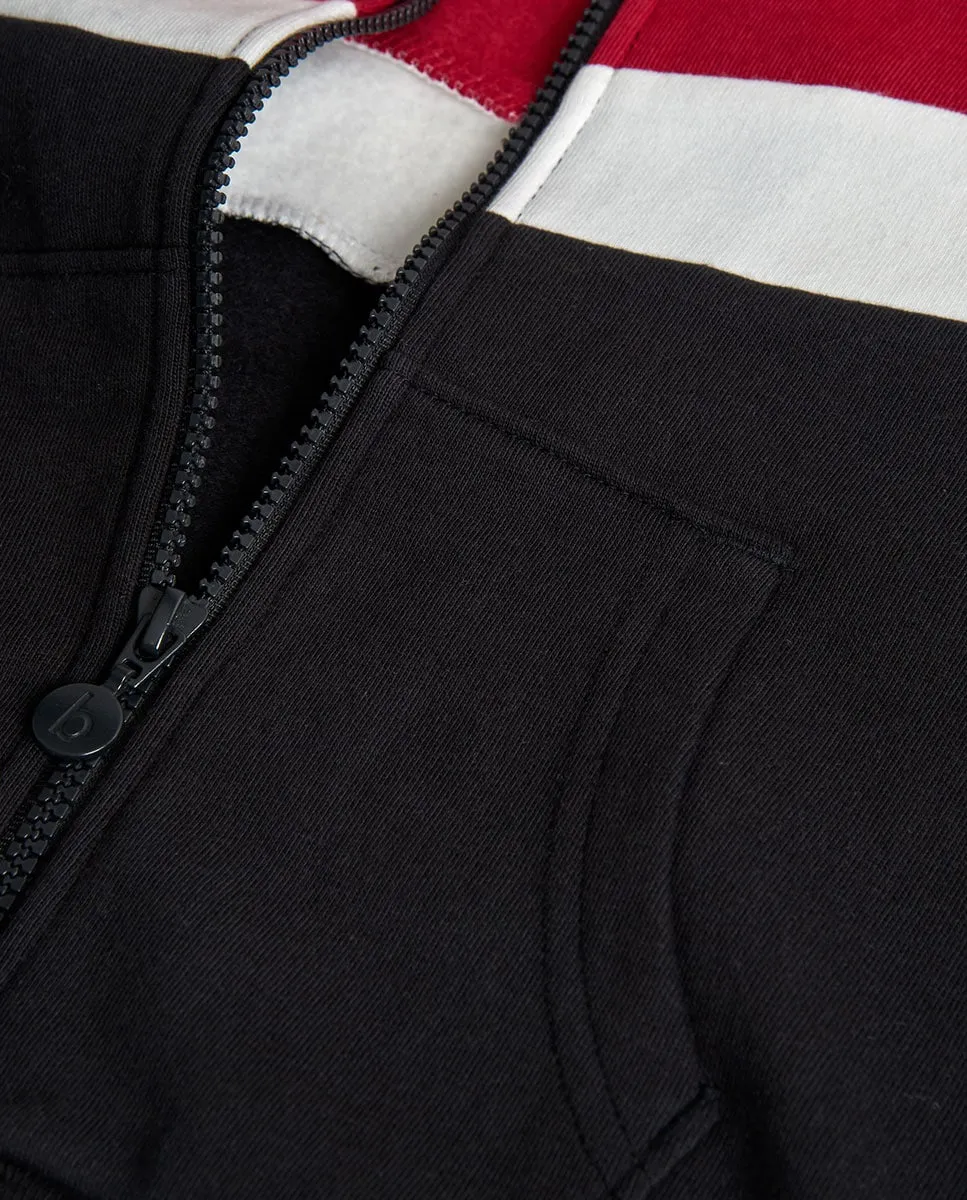 Чёрная флисовая куртка: Эта куртка с капюшоном идеально подходит для осени и зимы. Изготовленная из мягкой ткани, она обеспечивает тепло и комфорт. Она имеет дизайн в блоках цвета: красный, белый и чёрный, что придаёт современный и привлекательный стиль. Молния и передние карманы добавляют функциональности. Доступна в размерах от 2 до 14. Идеально подходит для сочетания с повседневными брюками или джинсами, хорошо подходит для различных мероприятий и холодной погоды. Это практичный и стильный вариант для повседневной носки.