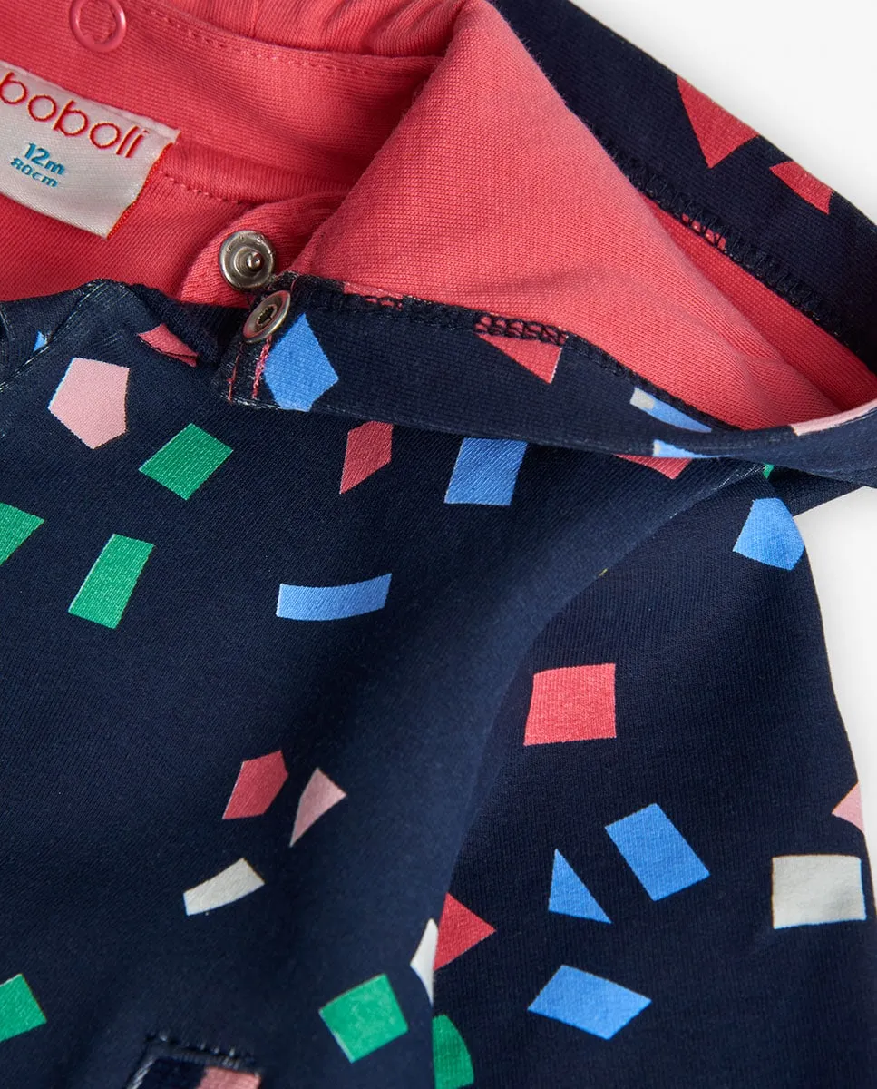 Флисовая куртка темно-синего цвета с геометрическим узором, идеально подходит для того, чтобы держать вашего малыша в комфорте и тепле в осенние и зимние сезоны. Сшита из мягкой и теплой ткани, она обеспечивает благосостояние малыша во время носки. Доступна в размерах от 12 месяцев до 10 лет, она предлагает универсальность и стиль, идеально сочетаясь с брюками или юбками. Идеальна для создания очаровательного и функционального образа для любого случая.