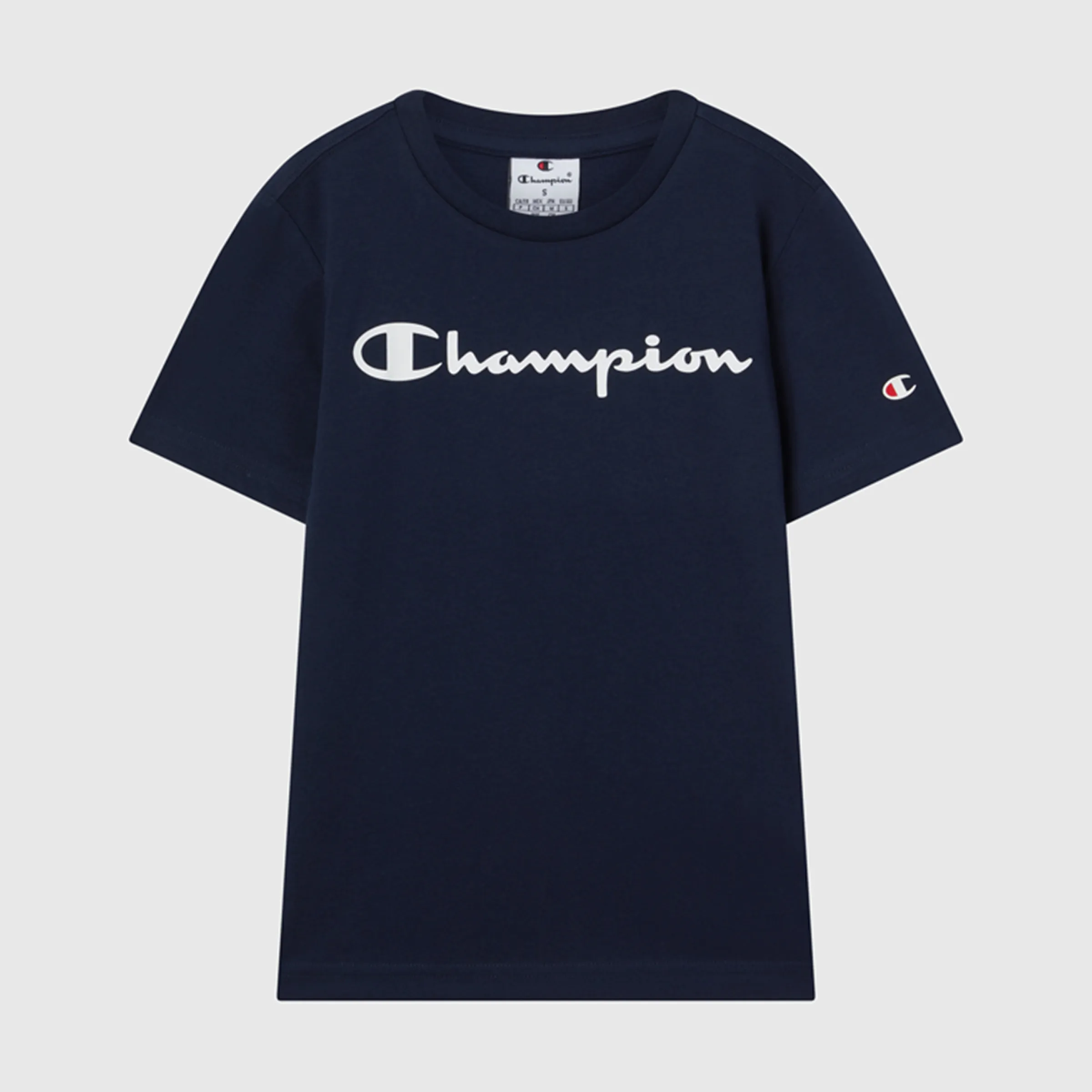 Классическая футболка спортивной линии Champion. Короткий рукав, круглое горловинство и большой напечатанный логотип. На 100% из хлопка, настоящий классика, которая легко комбинируется с гардеробом.
