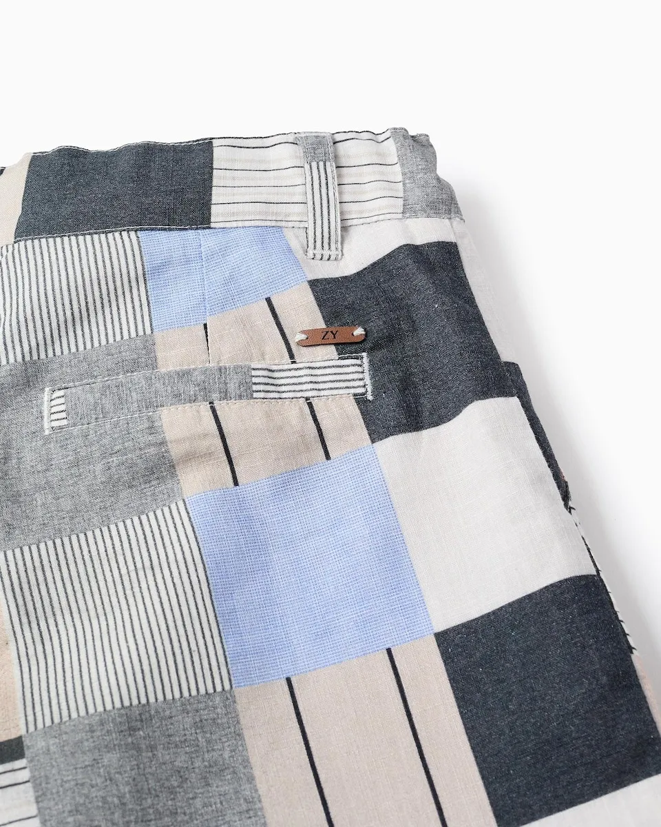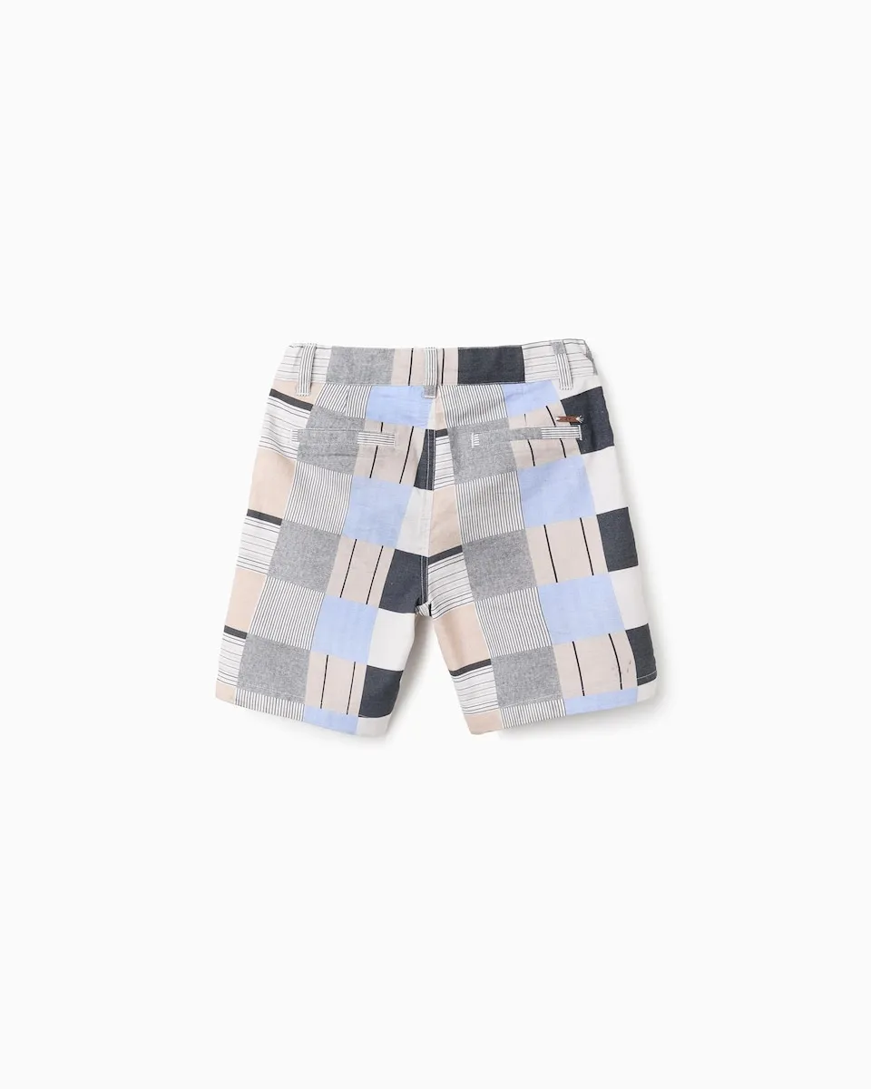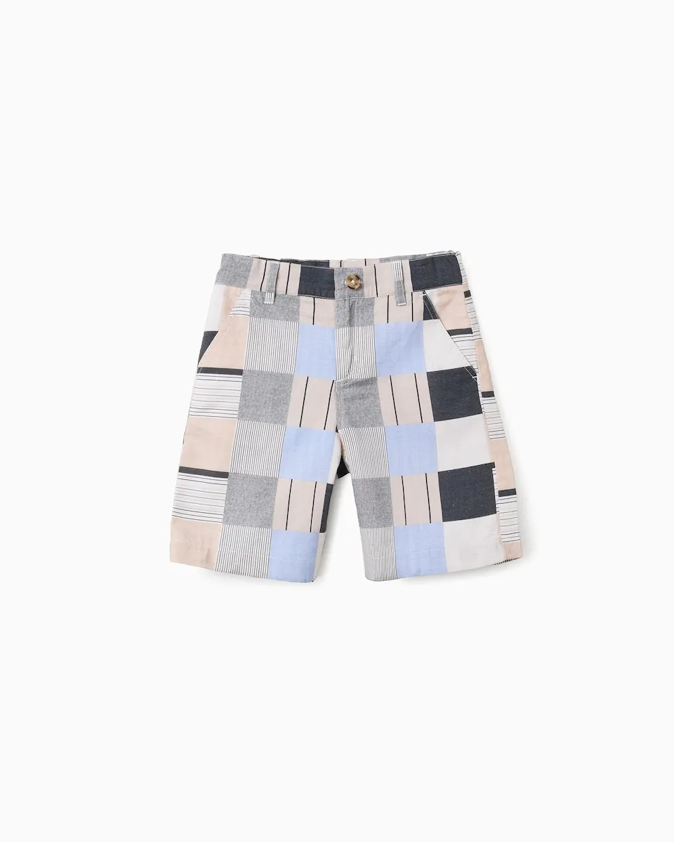 Коллекция Братья и Сестры. Шорты из тонкой ткани 100% хлопок с полосками и клетками в оттенках синего, бежевого и серого. Функциональные боковые карманы и декоративные задние карманы. Регулируемая внутренняя талия с резинками и пуговицами. Идеально для стильного образа для братьев и сестер! Big Me: регулируется с помощью пуговицы для детей до 8/9 лет, чтобы упростить процесс одевания и способствовать самостоятельности вашего ребенка.