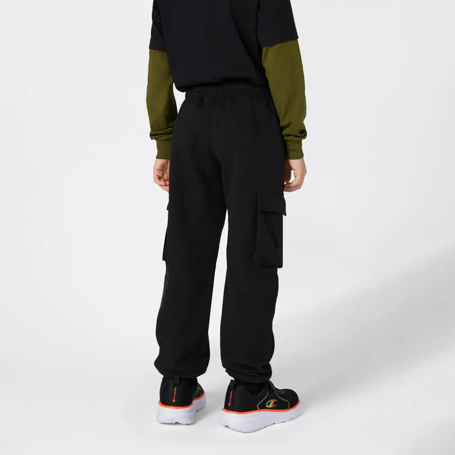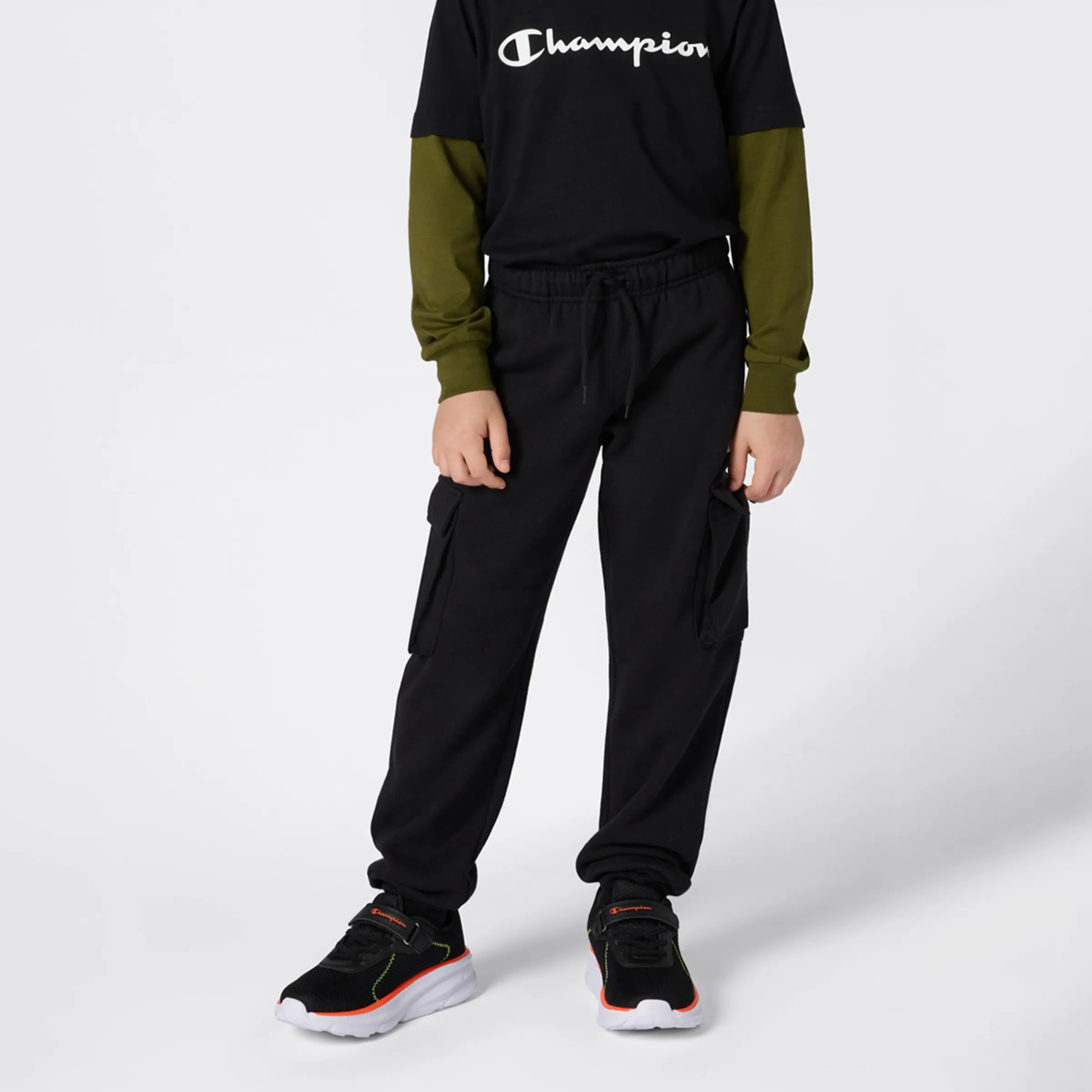 Модные спортивные брюки Champion с манжетами. Эластичный пояс с шнурком, большие боковые карманы 'карго', эластичные манжеты и маленький вышитый логотип. Из флисового хлопка 240 г, придающий новое звучание зиме.